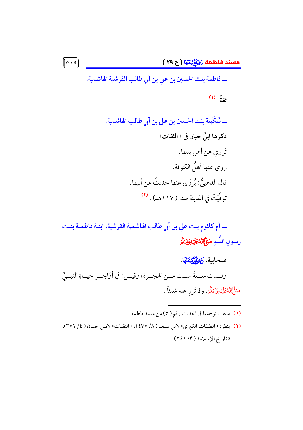 (¬١) سبقت ترجمتها في الحديث رقم (٥) من مسند فاطمة