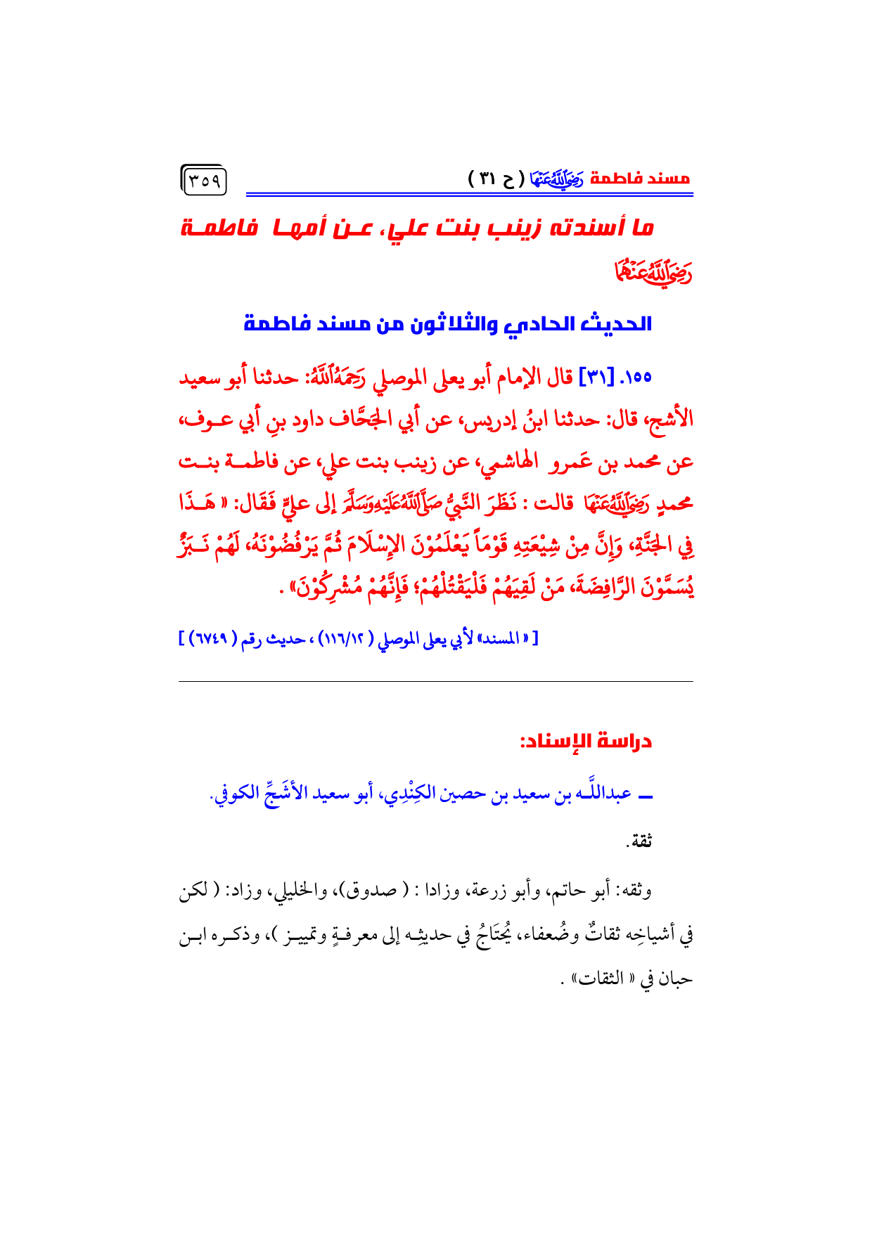 الحديث الحادي والثلاثون من مسند فاطمة