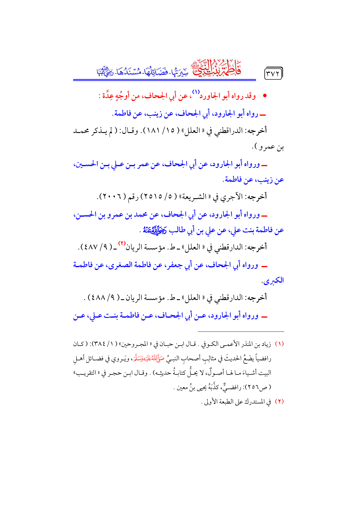 ــ رواه أبو الجارود، أبي الجحاف، عن زينب، عن فاطمة.