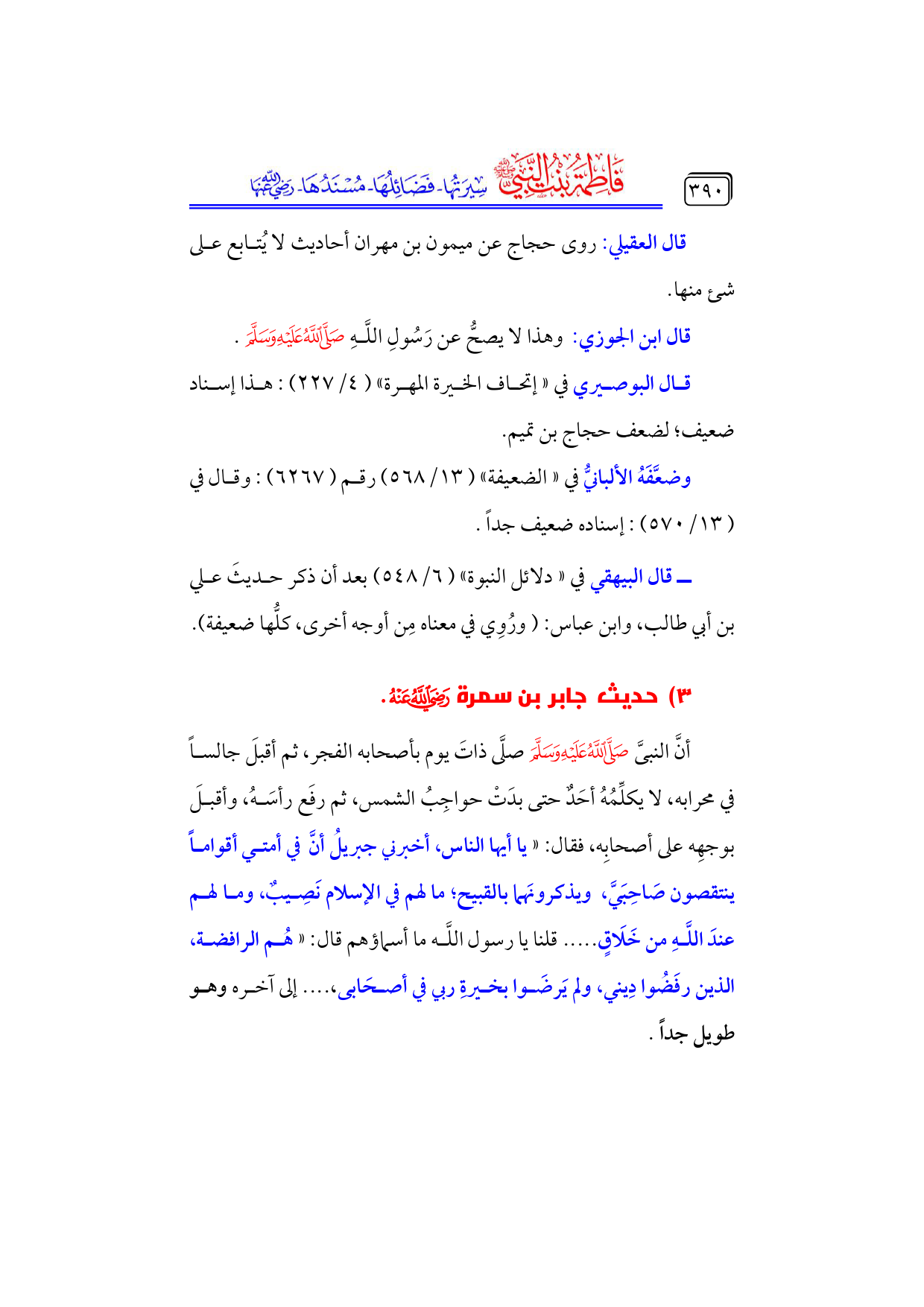 كتاب فاطمة بنت النبي - صلى الله عليه وسلم - سيرتها، فضائلها، مسندها - رضي الله عنها - (اسم الجزء: 6)