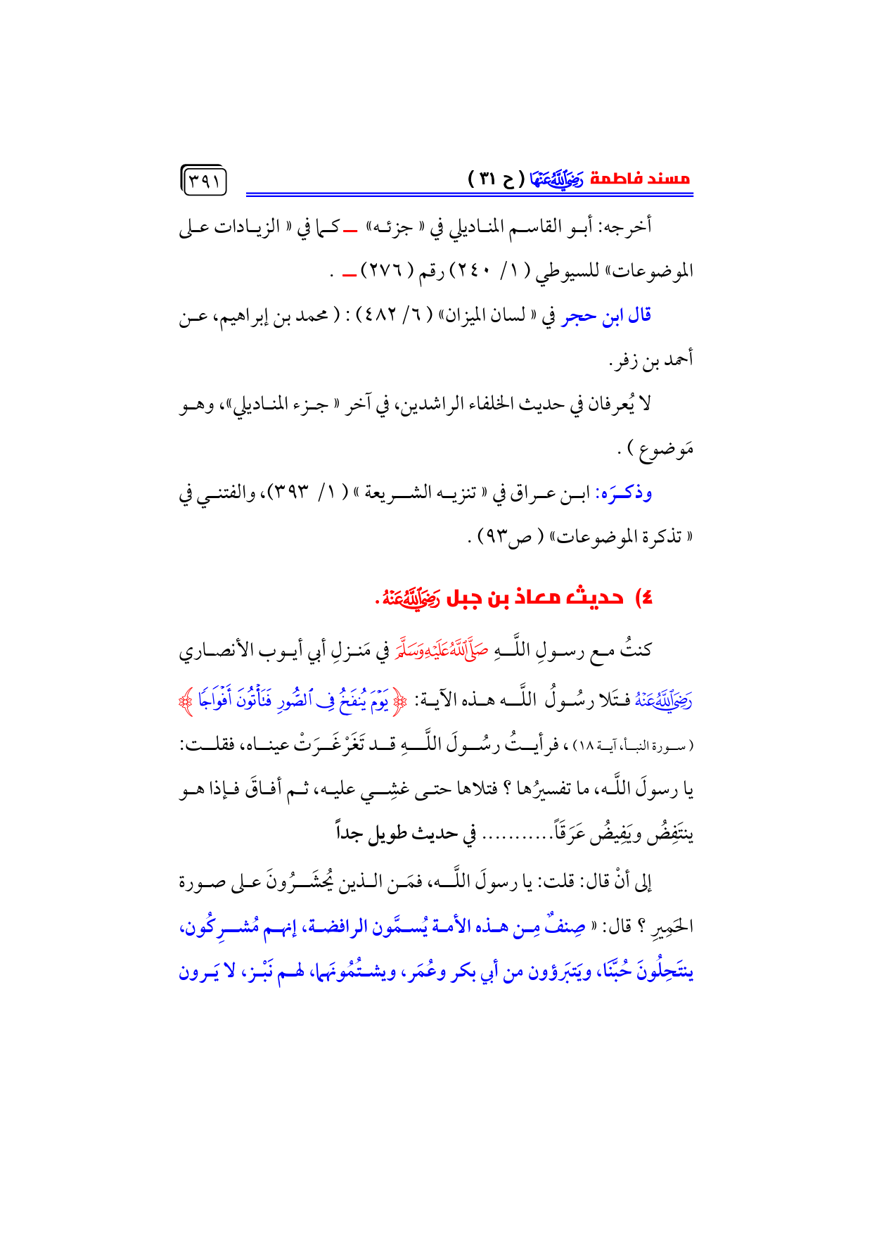 كتاب فاطمة بنت النبي - صلى الله عليه وسلم - سيرتها، فضائلها، مسندها - رضي الله عنها - (اسم الجزء: 6)