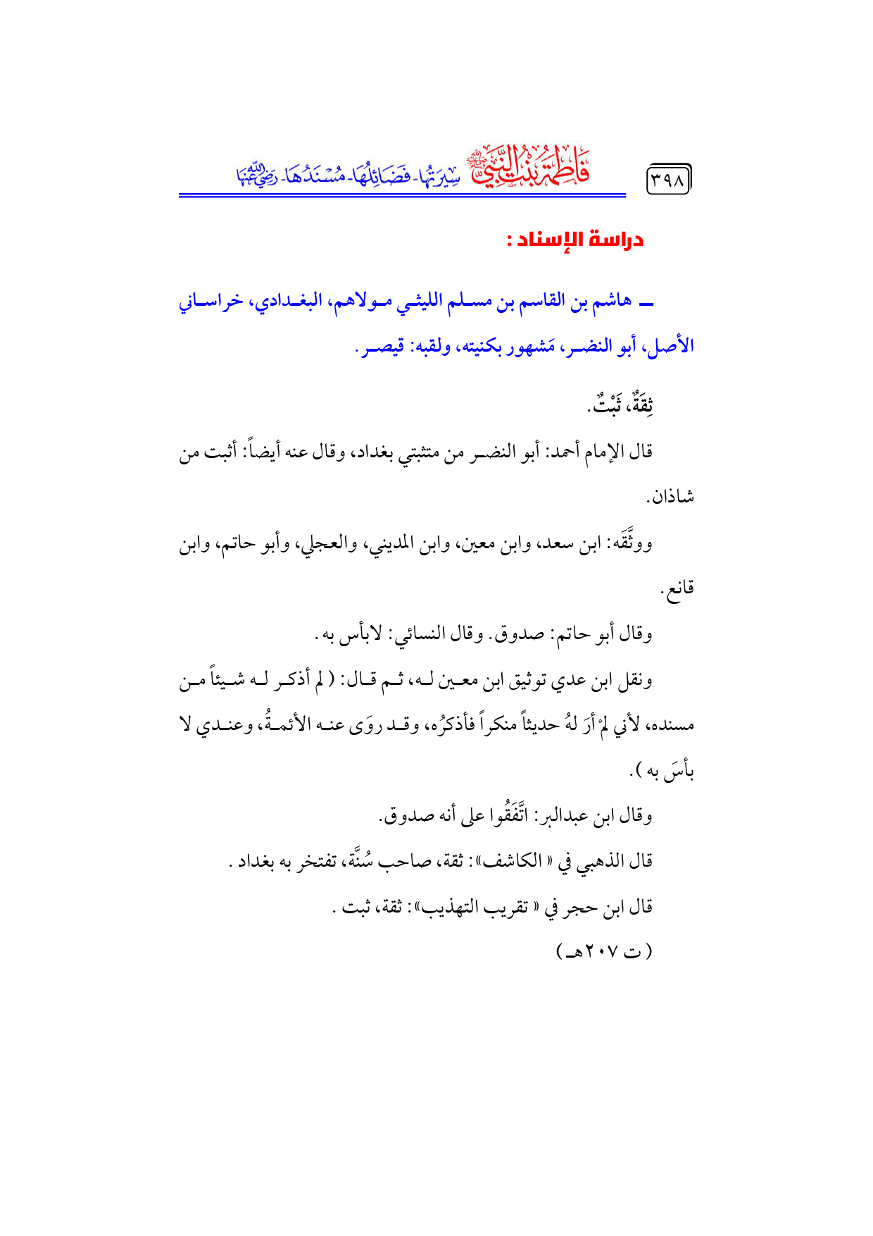 كتاب فاطمة بنت النبي - صلى الله عليه وسلم - سيرتها، فضائلها، مسندها - رضي الله عنها - (اسم الجزء: 6)