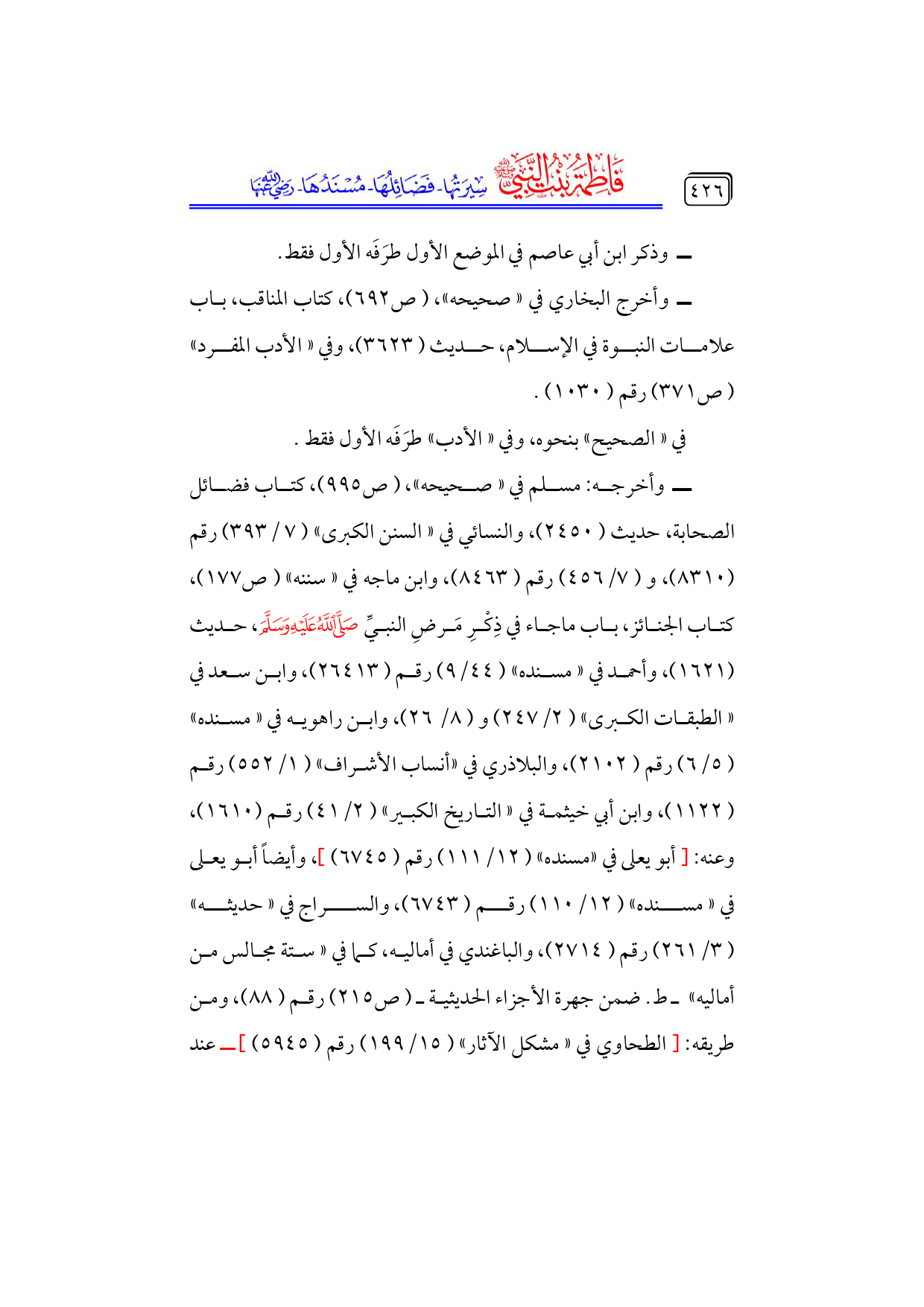 كتاب فاطمة بنت النبي - صلى الله عليه وسلم - سيرتها، فضائلها، مسندها - رضي الله عنها - (اسم الجزء: 6)