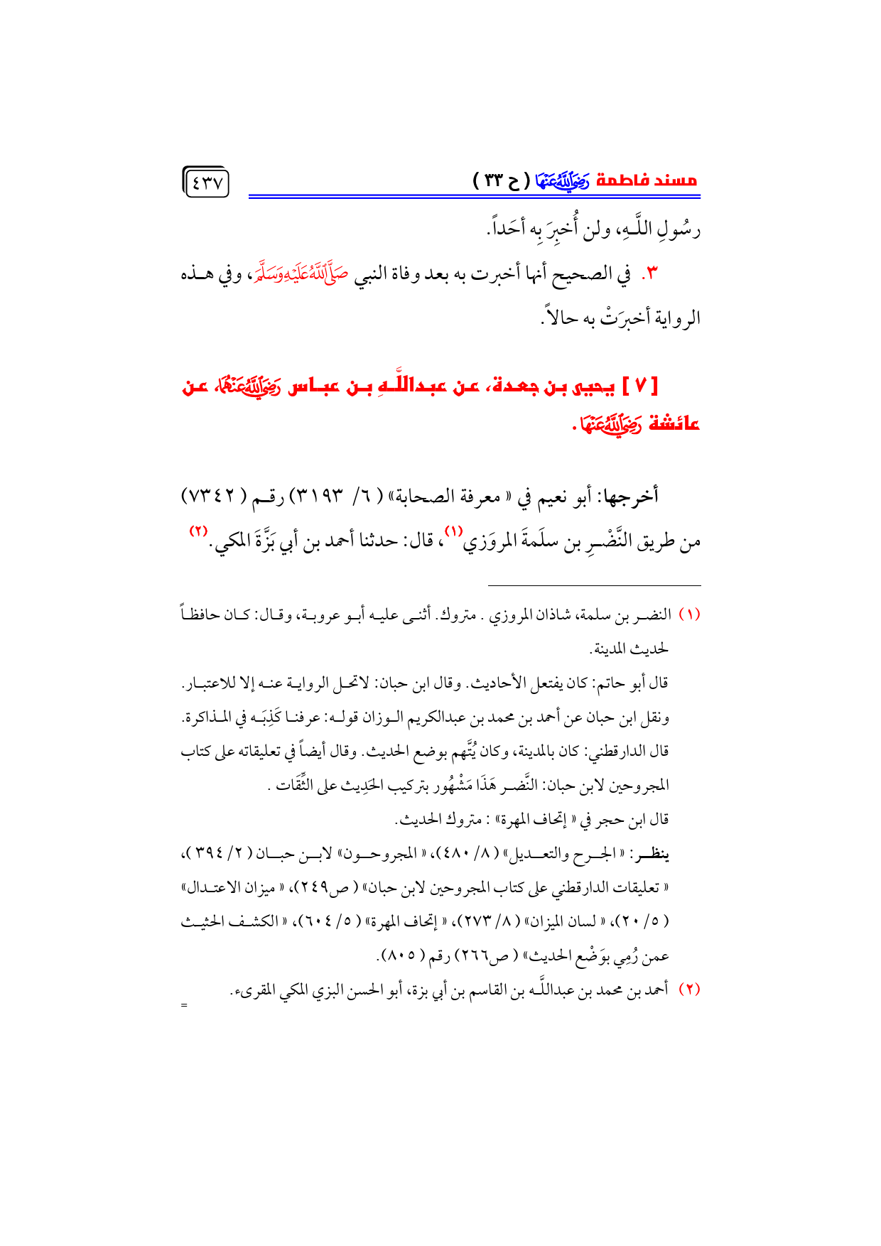 كتاب فاطمة بنت النبي - صلى الله عليه وسلم - سيرتها، فضائلها، مسندها - رضي الله عنها - (اسم الجزء: 6)