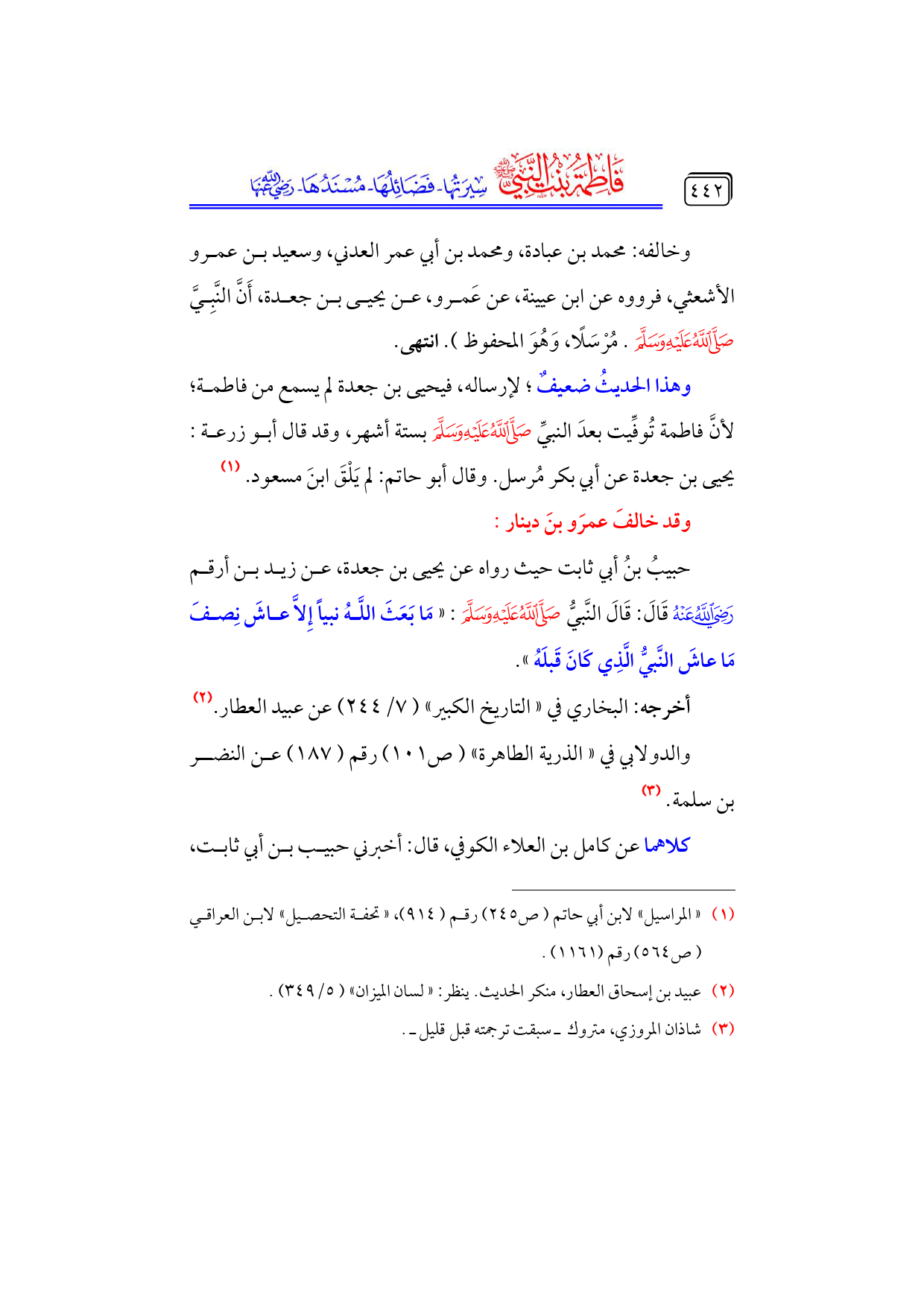 كتاب فاطمة بنت النبي - صلى الله عليه وسلم - سيرتها، فضائلها، مسندها - رضي الله عنها - (اسم الجزء: 6)
