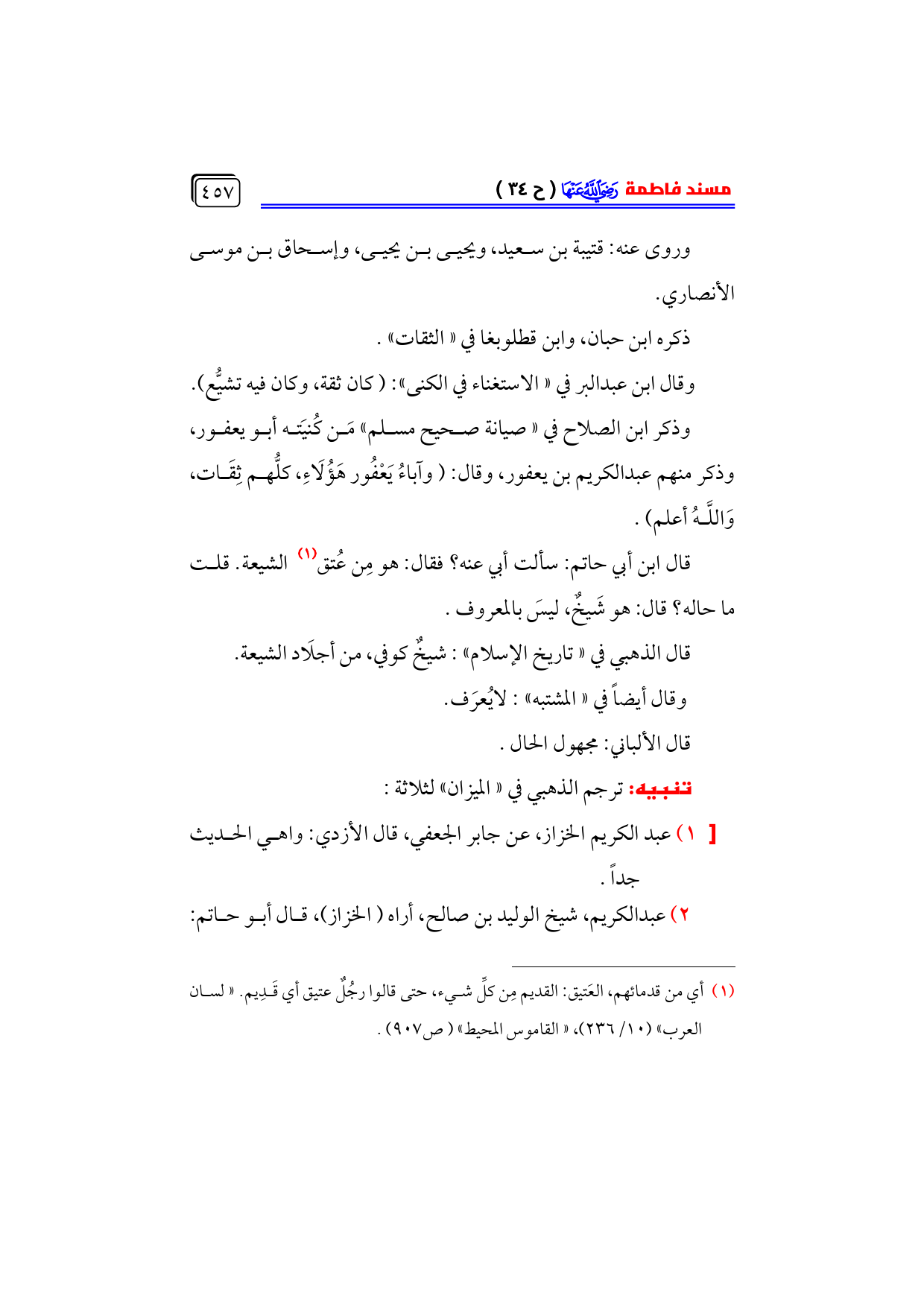(¬١) أي من قدمائهم، العَتيق: القديم مِن كلِّ شيء، حتى قالوا رجُلٌ عتيق أي قَدِيم. «لسان العرب» (١٠/ ٢٣٦)، «القاموس المحيط» (ص ٩٠٧).