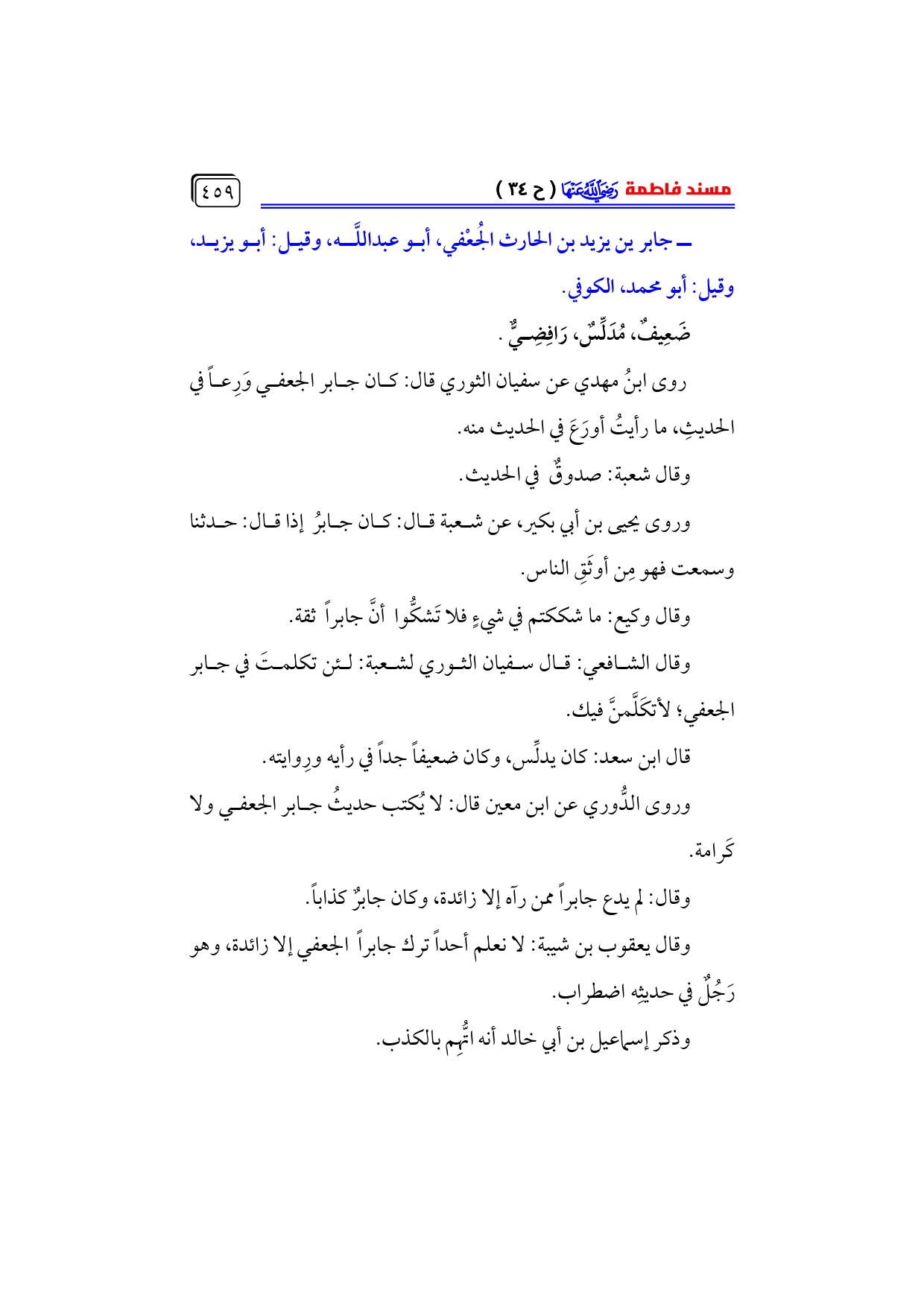 ــ جابر ين يزيد بن الحارث الجُعْفي، أبو عبداللَّه، وقيل: أبو يزيد، وقيل: أبو محمد، الكوفي.