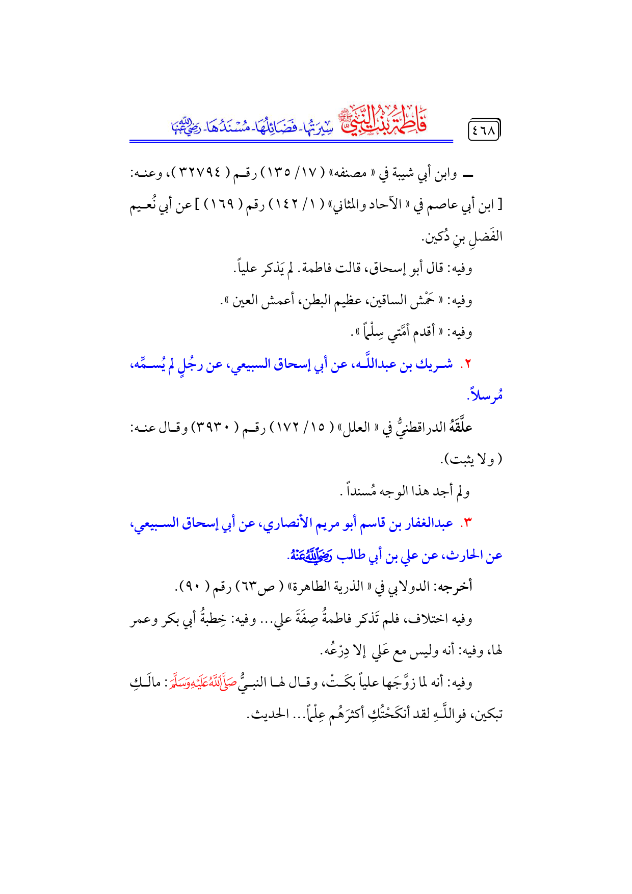 كتاب فاطمة بنت النبي - صلى الله عليه وسلم - سيرتها، فضائلها، مسندها - رضي الله عنها - (اسم الجزء: 6)