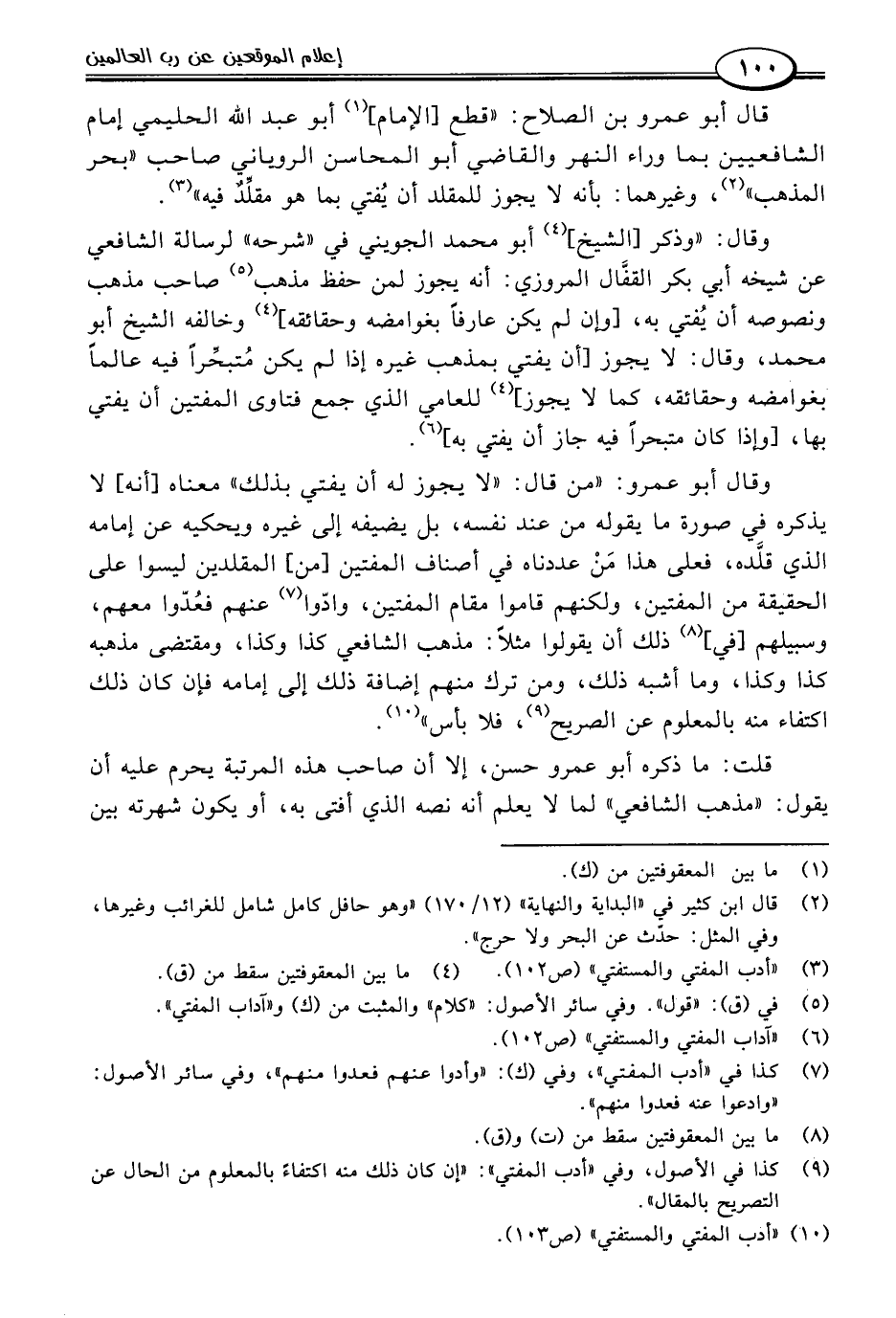 (١٠) "أدب المفتي والمستفتي" (ص ١٠٣).
