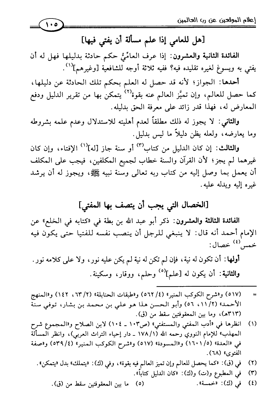 (١) انظرها في "أدب المفتي والمستفتي" (ص ١٠٣ - ١٠٤) لابن الصلاح و"المجموع شرح المهذب" للإمام النووي رحمه اللَّه (١/ ١٧٨ - دار إحياء التراث العربي)، وانظر المسألة في "العدة" (٥/ ١٦٠١) و"المسودة" (٥١٧) و"شرح الكوكب المنير" (٤/ ٥٣٩) و"صفة الفتوى" (٦٨).