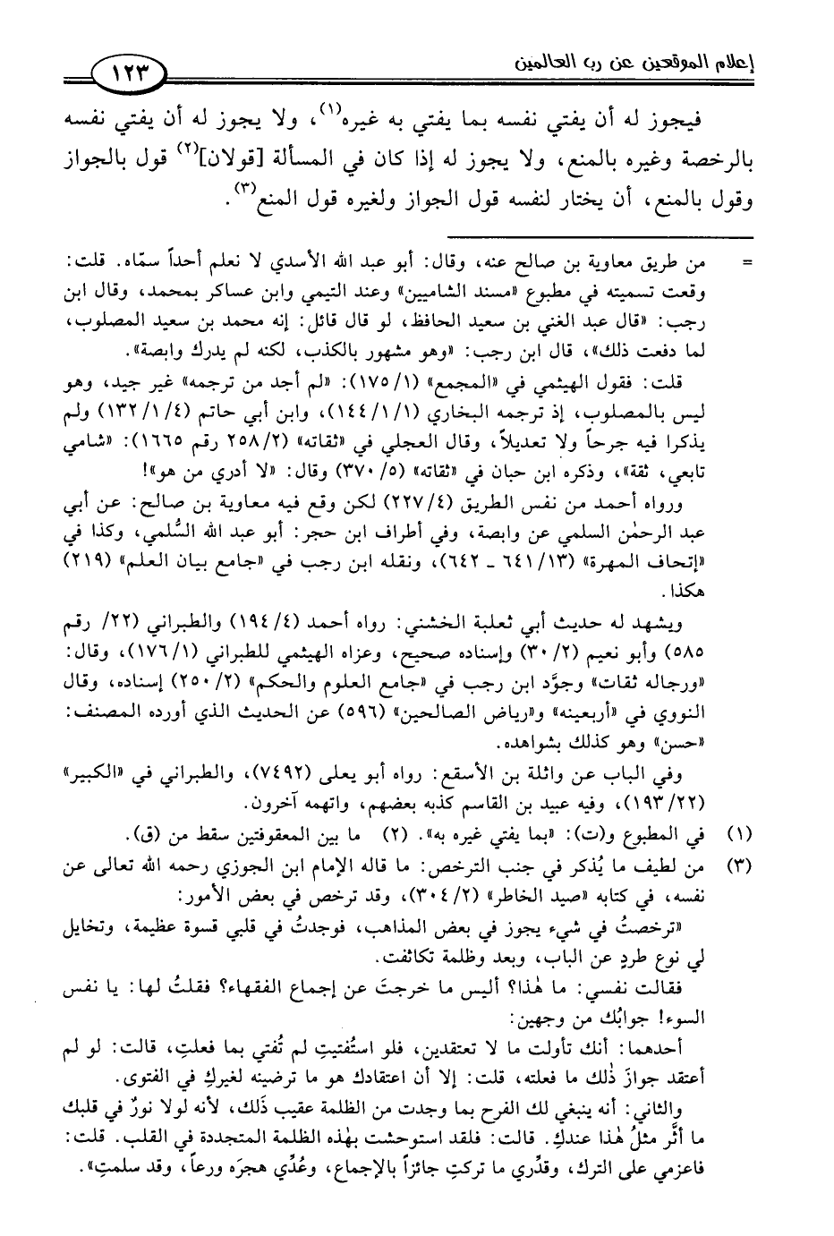 (١) في المطبوع و (ت): "بما يفتي غيره به".