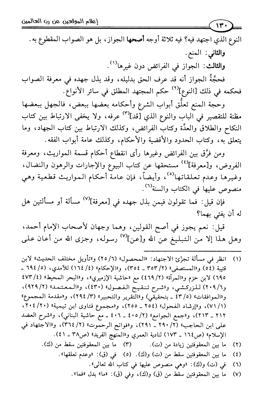 (١) انظر في مسألة تجزّئ الاجتهاد: "المحصول" (٦/ ٢٥) و"تأويل مختلف الحديث" لابن قتيبة (٥٤) و"المستصفى" (٢/ ٣٥٣ - ٣٥٤)، و"الإحكام" (٤/ ١٦٤) للآمدي، (٥/ ٦٩٤ - ٦٩٥) لابن حزم و"المرآة" (٢/ ٤٦٩) مع "حاشية الإزميري"، و"البحر المحيط" (٤/ ٤٧٣ و ٦/ ٢٠٩) للزركشي، و"شرح تنقيح الفصول" (٤٣٠)، و"المعتمد" (٢/ ٩٢٩)، و"الموافقات" (٥/ ٤٣ - بتحقيقي) و"التقرير والتحبير" (٣/ ٢٩٤)، و"مقدمة المجموع" (١/ ٧١)، و"إرشاد الفحول" (٢٥٤ - ٢٥٥)، و"مجموع فتاوى ابن تيمية" (٢٠/ ٢٠٤، ٢١٢ - ٢١٣)، و"جمع الجوامع" (٢/ ٤٠٥ - ٤٠٦ - مع حاشية البناني)، و"شرح العضد على ابن الحاجب" (٢/ ٢٩٠ - ٢٩١)، و"فواتح الرحموت" (٢/ ٣٦٤)، و"الاجتهاد في الإِسلام" (ص ١٦٤ - ١٧٣) لنادية العمري و"المنهج الفريد" (ص ٣٨ - ٤١).