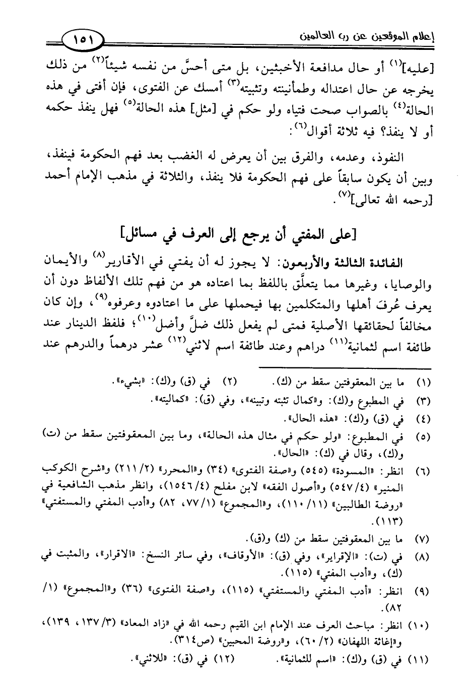 (٨) في (ت): "الإقراير"، وفي (ق): "الأوقاف"، وفي سائر النسح: "الاقرار"، والمثبت في (ك)، و"أدب المفتي" (١١٥).
