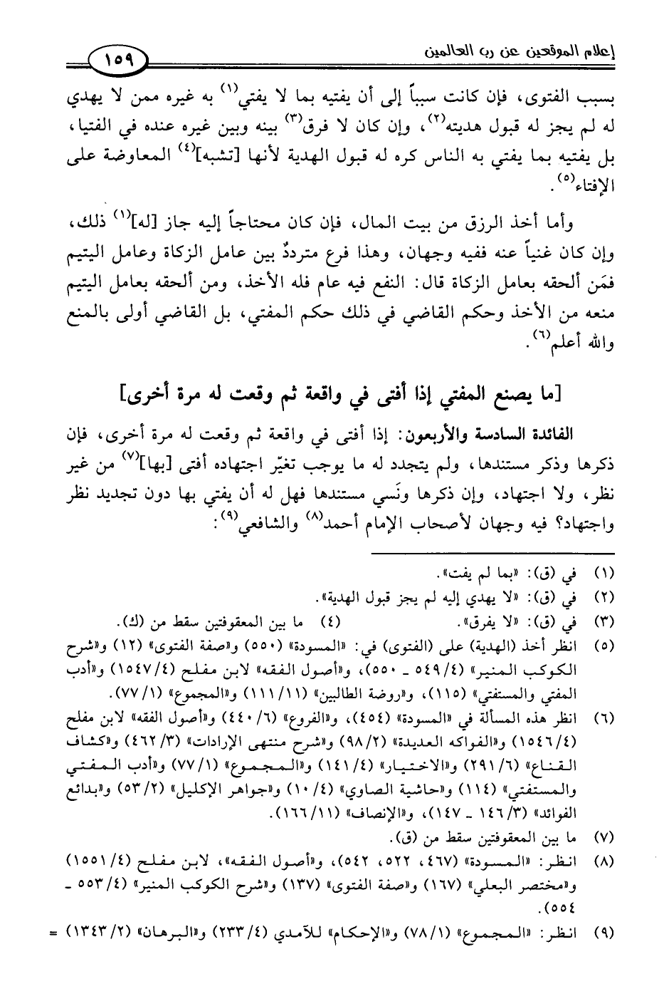 (٦) انظر هذه المسألة في "المسودة" (٤٥٤)، و"الفروع" (٦/ ٤٤٠) و"أصول الفقه" لابن مفلح (٤/ ١٥٤٦) و"الفواكه العديدة" (٢/ ٩٨) و"شرح منتهى الإرادات" (٣/ ٤٦٢) و"كشاف القناع" (٦/ ٢٩١) و"الاختيار" (٤/ ١٤١) و"المجموع" (١/ ٧٧) و"أدب المفتي والمستفتي" (١١٤) و"حاشية الصاوي" (٤/ ١٠) و"جواهر الإكليل" (٢/ ٥٣) و"بدائع الفوائد" (٣/ ١٤٦ - ١٤٧)، و"الإنصاف" (١١/ ١٦٦).