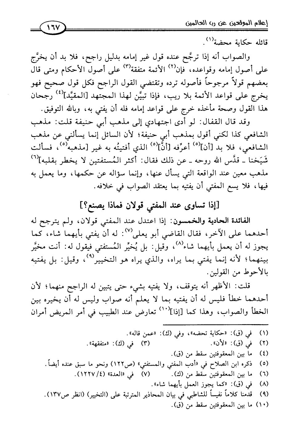 (٩) قدمنا كلامًا نفيسًا للشاطبي في بيان المحاذير المترتبة على (التخيير) (انظر ص ١٣٧).