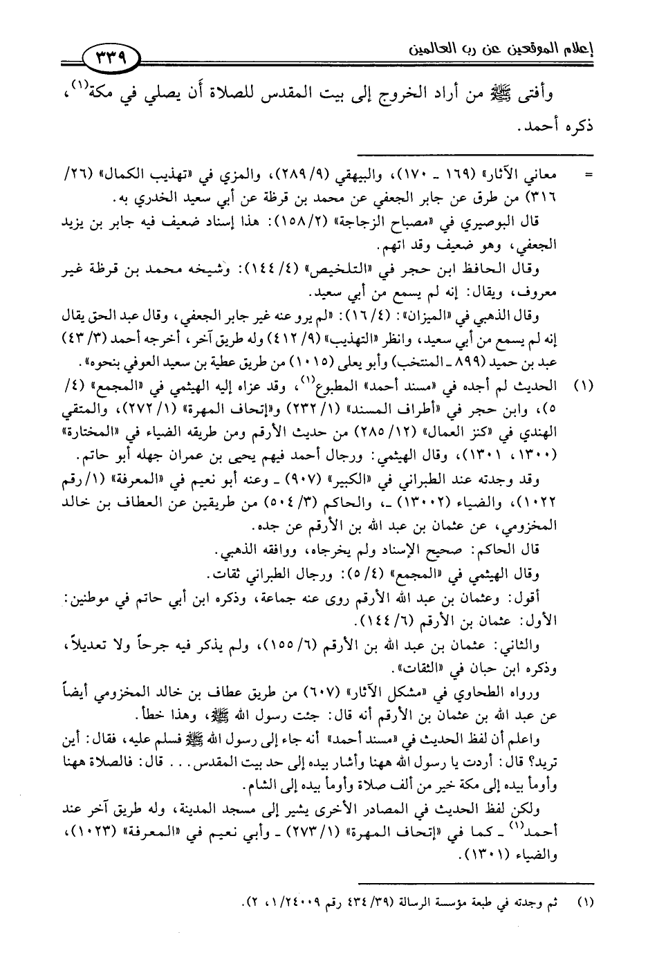 (١) ثم وجدته في طبعة مؤسسة الرسالة (٣٩/ ٤٣٤ رقم ٢٤٠٠٩/ ١، ٢).