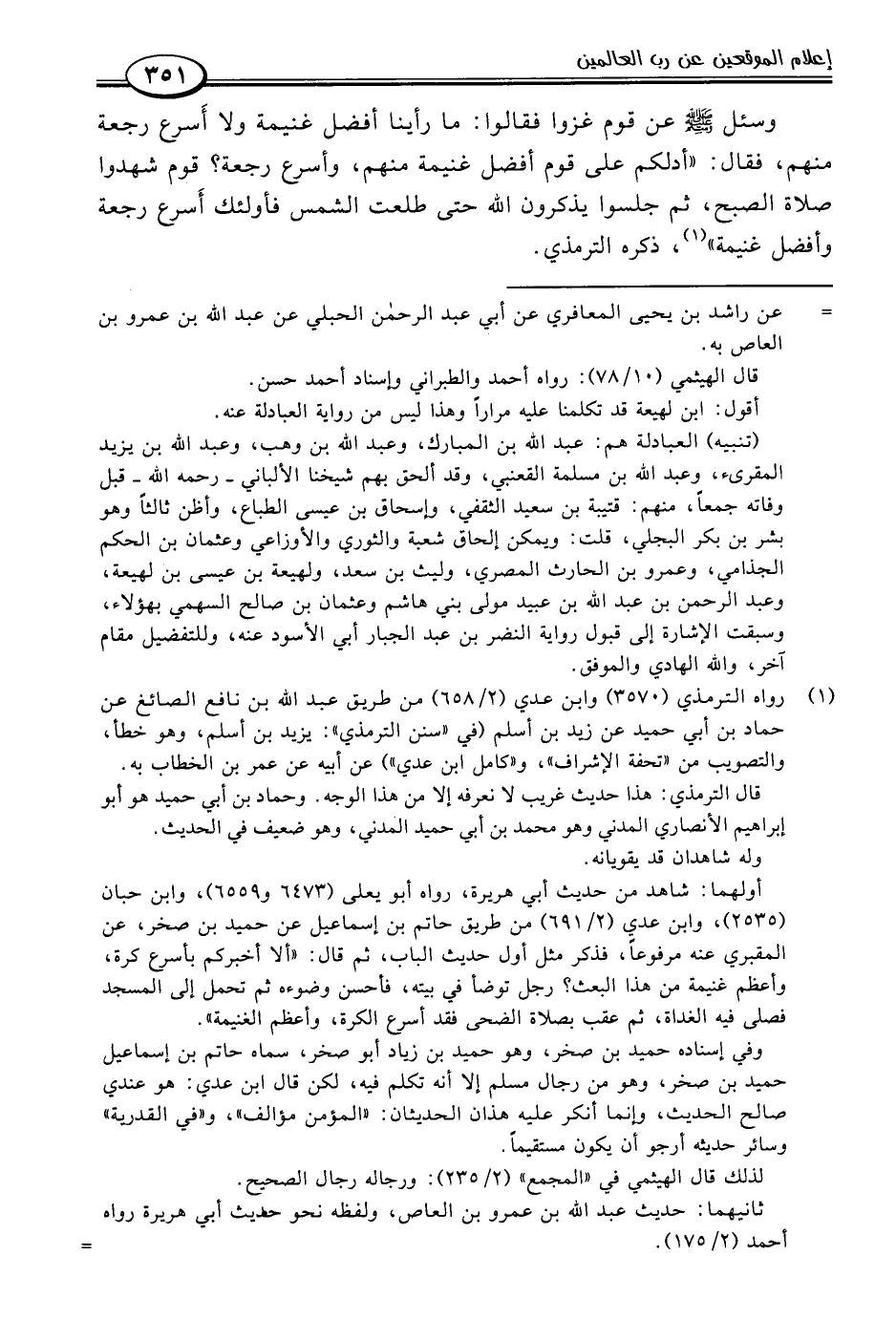 = عن راشد بن يحيى المعافري عن أبي عبد الرحمن الحبلي عن عبد اللَّه بن عمرو بن العاص به.