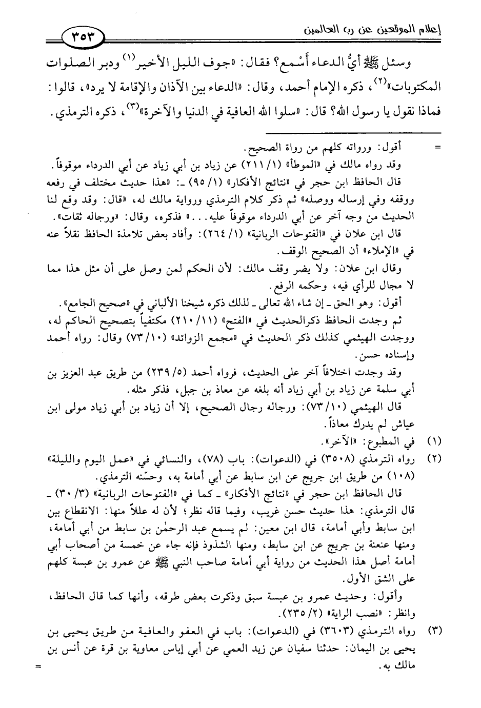 (٣) رواه الترمذي (٣٦٠٣) في (الدعوات): باب في العفو والعافية من طريق يحيى بن يحيى بن اليمان: حدثنا سفيان عن زيد العمي عن أبي إياس معاوية بن قرة عن أنس بن مالك به. =