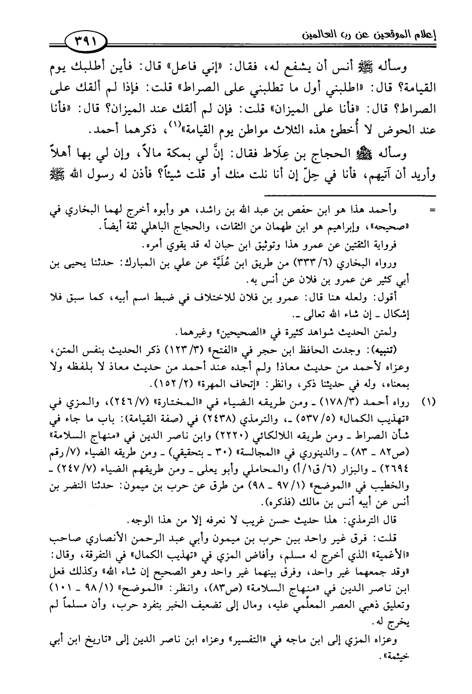 (١) رواه أحمد (٣/ ١٧٨) -ومن طريقه الضياء في "المختارة" (٧/ ٢٤٦)، والمزي في "تهذيب الكمال" (٥/ ٥٣٧) -، والترمذي (٢٤٣٨) في (صفة القيامة): باب ما جاء في شأن الصراط -ومن طريقه اللالكائي (٢٢٢٠) وابن ناصر الدين في "منهاج السلامة" (ص ٨٢ - ٨٣) - والدينوري في "المجالسة" (٣٠ - بتحقيقي) -ومن طريقه الضياء (٧/ رقم ٢٦٩٤) - والبزار (٦/ ق ١/ أ) والمحاملي وأبو يعلى -ومن طريقهم الضياء (٧/ ٢٤٧) - والخطيب في "الموضح" (١/ ٩٧ - ٩٨) من طرق عن حرب بن ميمون: حدثنا النضر بن أنس عن أبيه أنس بن مالك (فذكره).