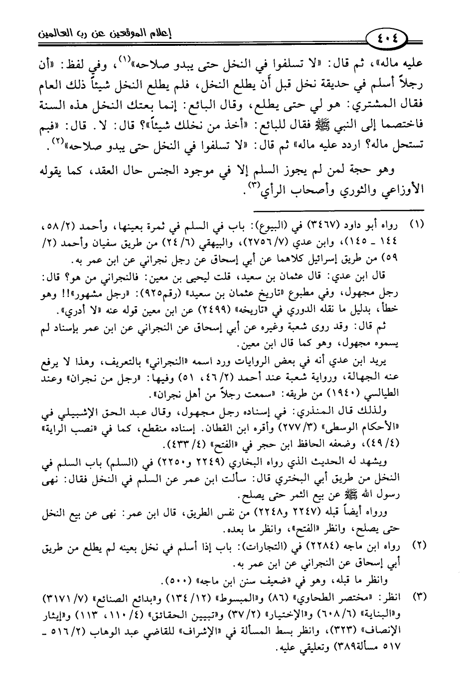 (٢) رواه ابن ماجه (٢٢٨٤) في (التجارات): باب إذا أسلم في نخل بعينه لم يطلع من طريق أبي إسحاق عن النجراني عن ابن عمر به.