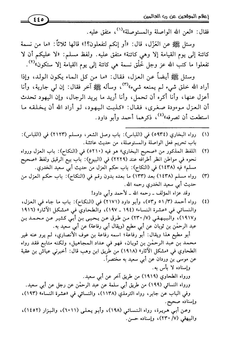 (٣) رواه مسلم (١٤٣٨) بعد (١٣٣) ما بعده بدون رقم في (النكاح): باب حكم العزل من حديث أبي سعيد الخدري رحمه اللَّه.