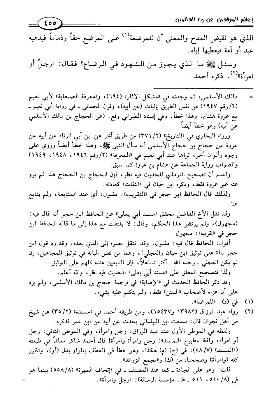 قلت: وهو على الجادة -كما عند المصنف- في "إتحاف المهرة" (٨/ ٥٥٨) بينما هو في (٨/ ٥١٠، ٥١١ - ط. مؤسسة الرسالة): "رجل وامرأة". =