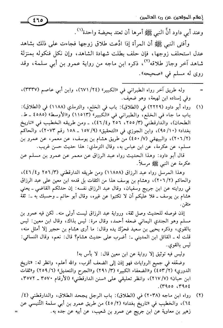 (٢) رواه ابن ماجه (٢٠٣٨) في (الطلاق): بات الرجل يجحد الطلاق، والدارقطني (٤/ ٦٤)، والخطيب في "تاريخ بغداد" (٢/ ٤٥) من طريق عمرو بن أبي سلمة التِّنيسي عن زهير بن معاوية عن ابن جريج عن عمرو بن شعيب، عن أبيه عن جده به. =