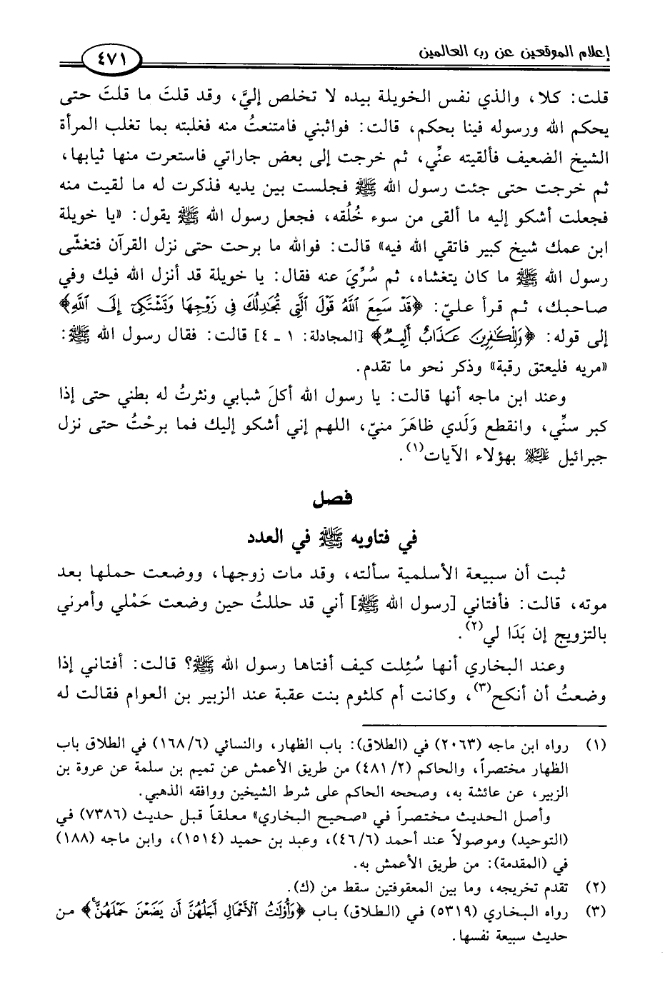 (٣) رواه البخاري (٥٣١٩) في (الطلاق) باب {وَأُولَاتُ الْأَحْمَالِ أَجَلُهُنَّ أَنْ يَضَعْنَ حَمْلَهُنَّ} من حديث سبيعة نفسها.