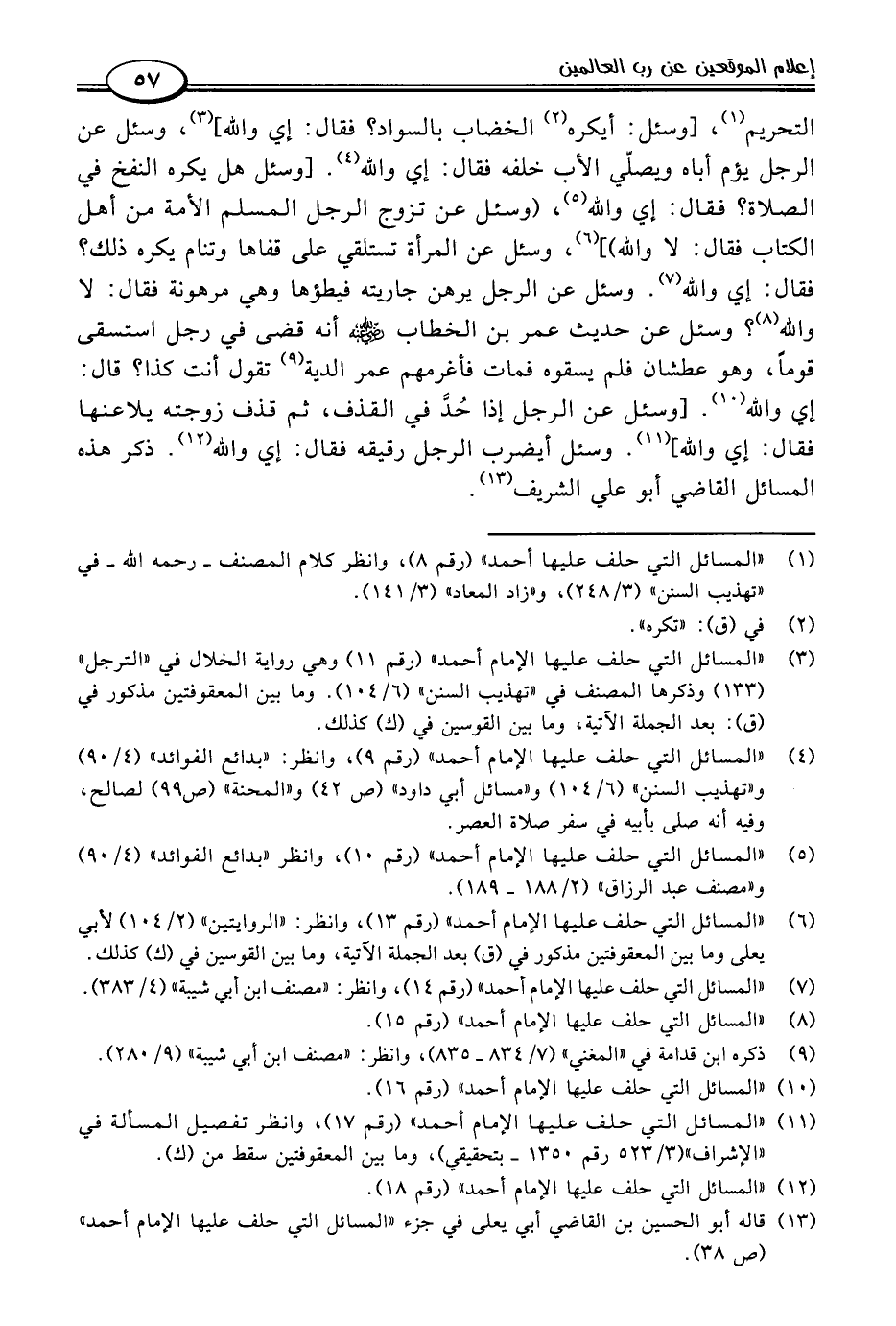 (١٣) قاله أبو الحسين بن القاضي أبي يعلى في جزء "المسائل التي حلف عليها الإمام أحمد" (ص ٣٨).