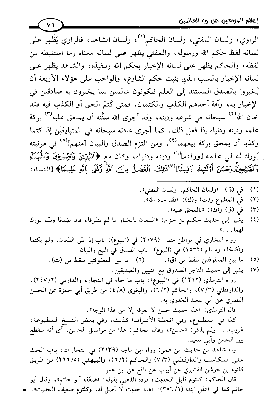 (٧) يشير إلى حديث التاجر الصدوق مع النبيين والصديقين.