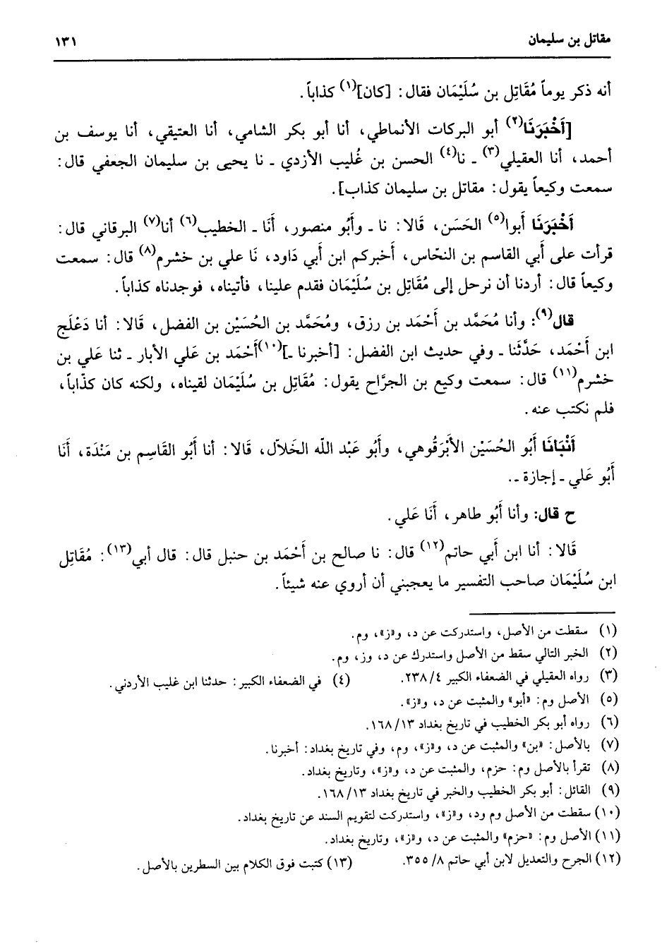 (9) القائل: أبو بكر الخطيب والخبر في تاريخ بغداد 13 / 168