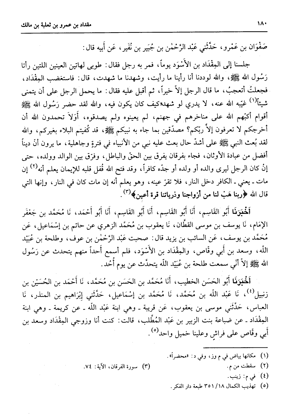 (5) تهذيب الكمال 18 / 351 طبعة دار الفكر
