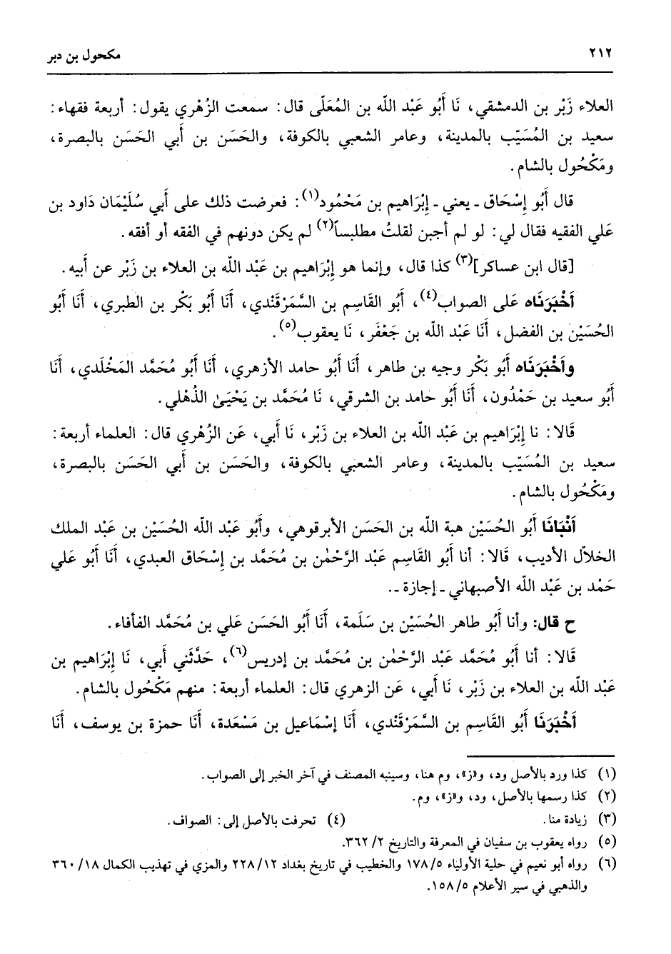 (6) رواه أبو نعيم في حلية الأولياء 5 / 178 والخطيب في تاريخ بغداد 12 / 228 والمزي في تهذيب الكمال 18 / 360