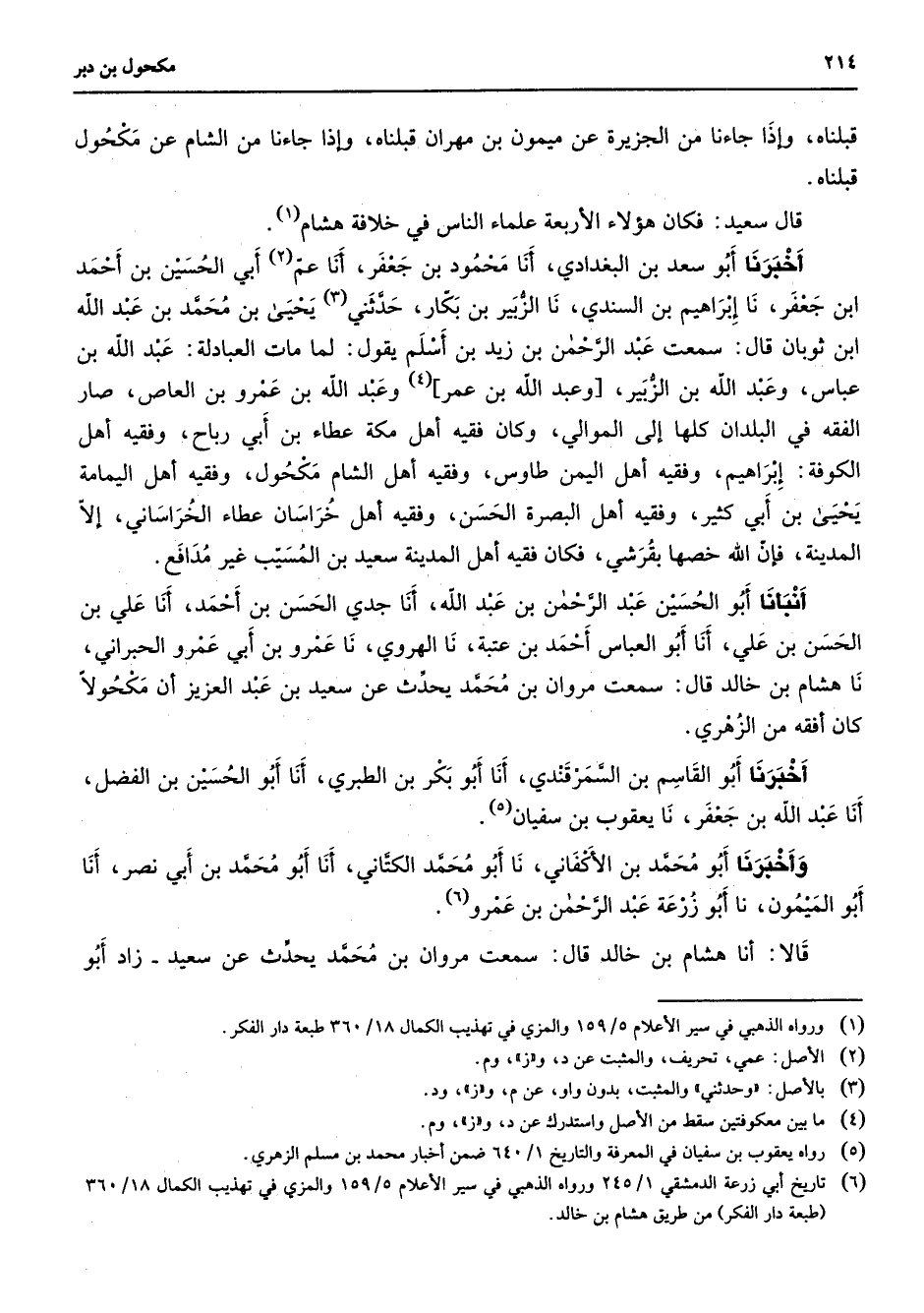 (6) تاريخ أبي زرعة الدمشقي 1 / 245 ورواه الذهبي في سير الأعلام 5 / 159 والمزي في تهذيب الكمال 18 / 360 (طبعة دار الفكر) من طريق هشام بن خالد