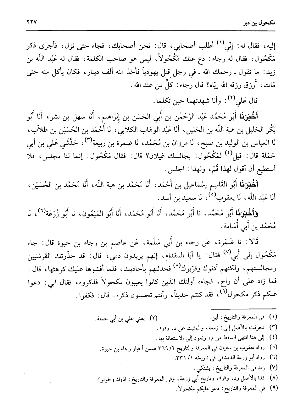(9) في المعرفة والتاريخ: دعو عليكم مكحولا