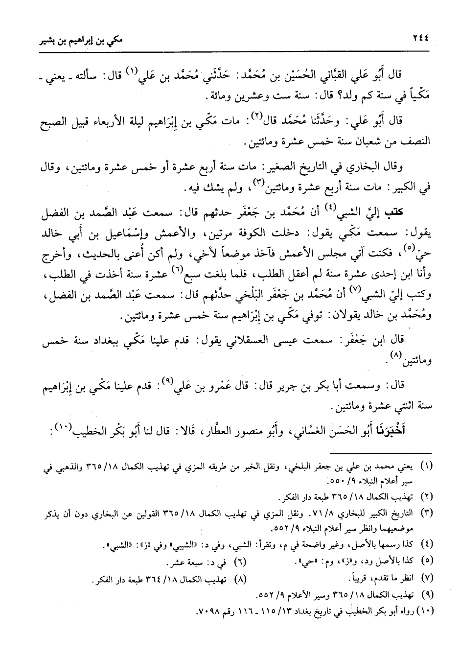 (9) تهذيب الكمال 18 / 365 وسير الأعلام 9 / 552