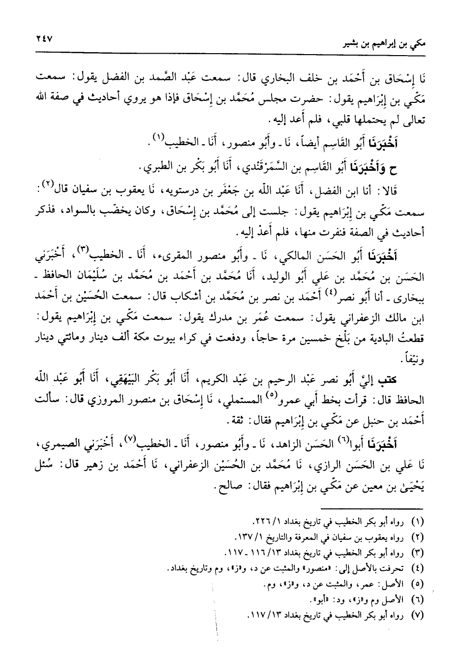 (7) رواه أبو بكر الخطيب في تاريخ بغداد 13 / 117