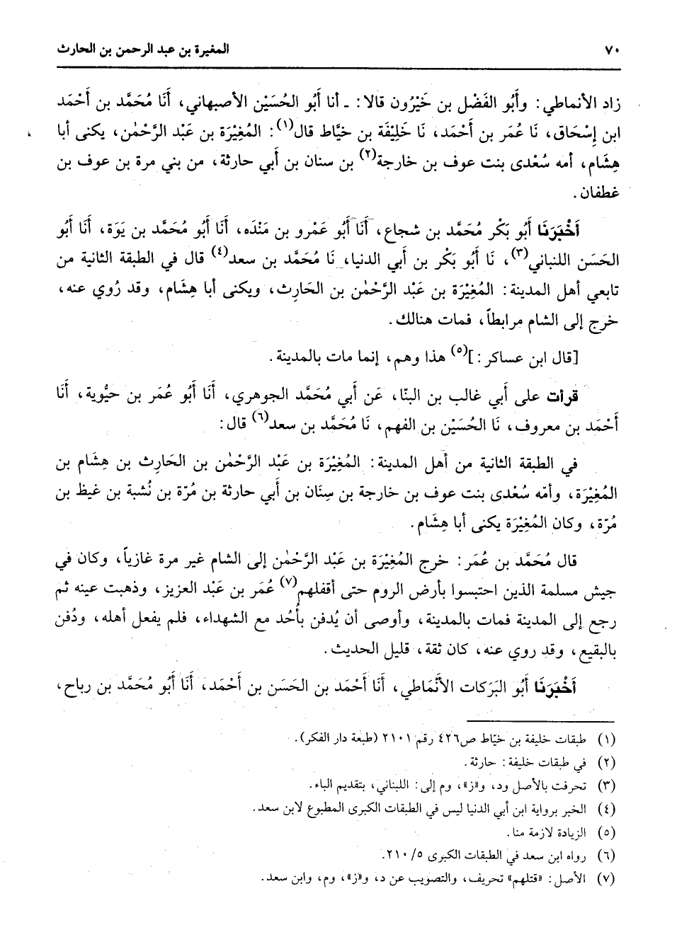 (6) رواه ابن سعد في الطبقات الكبرى 5 / 210