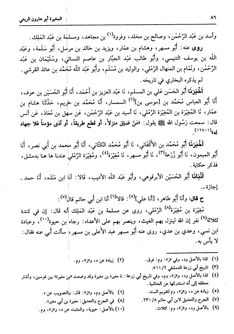 (4) كذا بالأصل ود و " ز " وم وفي تاريخ أبي زرعة: نا مغيرة بن مغيرة وقد وضعت " بن مغيرة " بين قوسين وأشار محققه إلى أنه استدركها عن الحاشية