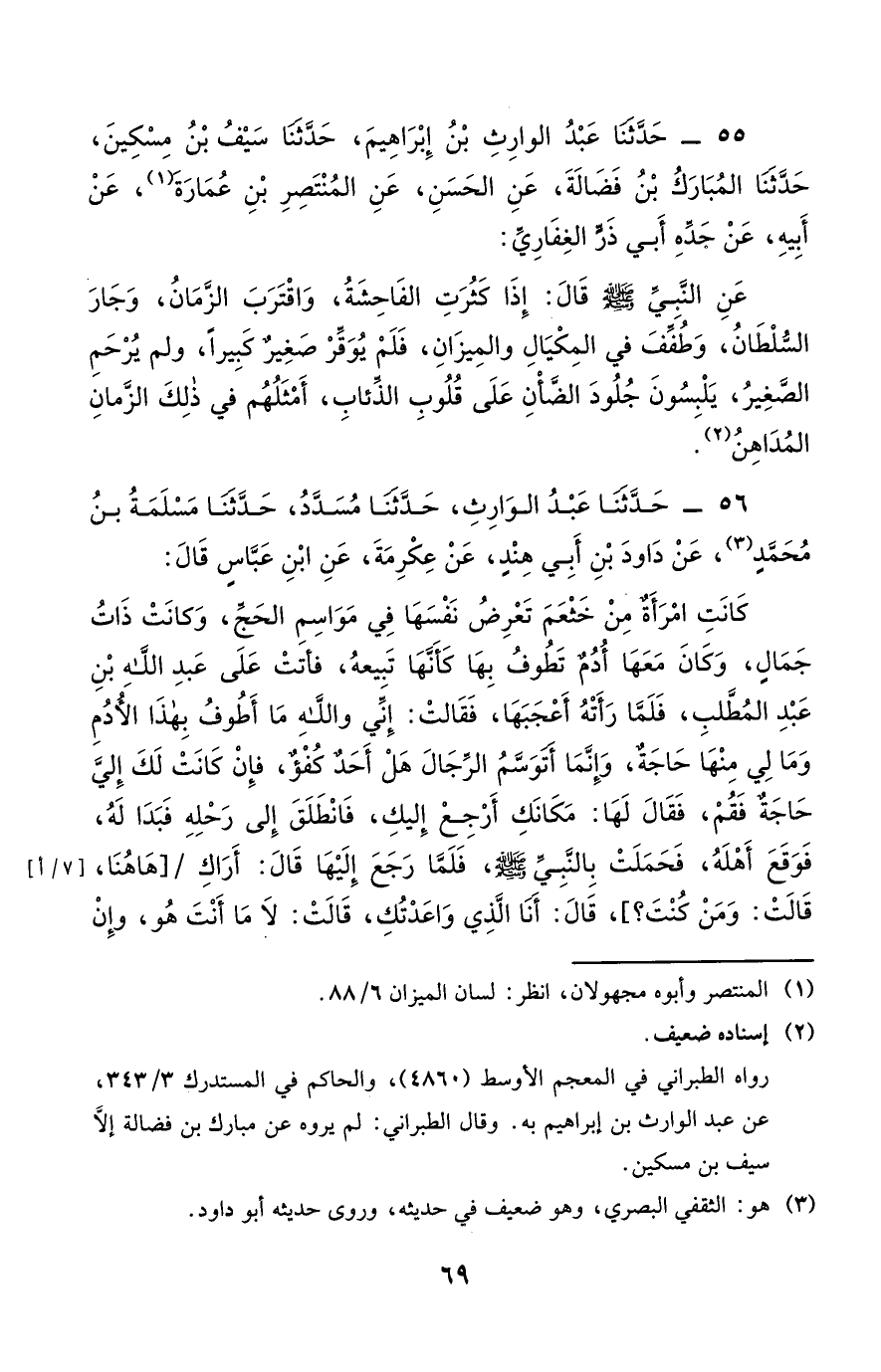 ٥٧ - حَدَّثَنَا [مُحَمَّدُ] بْنِ إِسْحَاقَ الصَّفَّارُ الْعَدْلُ حَدَّثَنَا الْحَسَنُ بْنُ المَكِّيّ حَدَّثَنَا ابْنُ عُيَيْنَةَ عَنْ [أَبِي الزِّنَادِ] عَنِ الأَعْرَجِ عَنْ أَبِي هُرَيْرَةَ قَالَ خَرَجَ رَسُولُ اللَّهِ صَلَّى اللَّهُ عَلَيْهِ وَسَلَّمَ مُتَّكِئٌ عَلَى [عَلِيٍّ] فَاسْتَقْبَلَهُ أَبُو بَكْرٍ وَعُمَرَ فَقَالَ يَا عَلِيٌّ أَتُحِبُّ هَذَيْنِ الشَّيْخَيْنِ قَالَ نَعَمْ يَا رَسُولَ اللَّهِ قَالَ حُبُّهُمَا يدخلك الجنة.