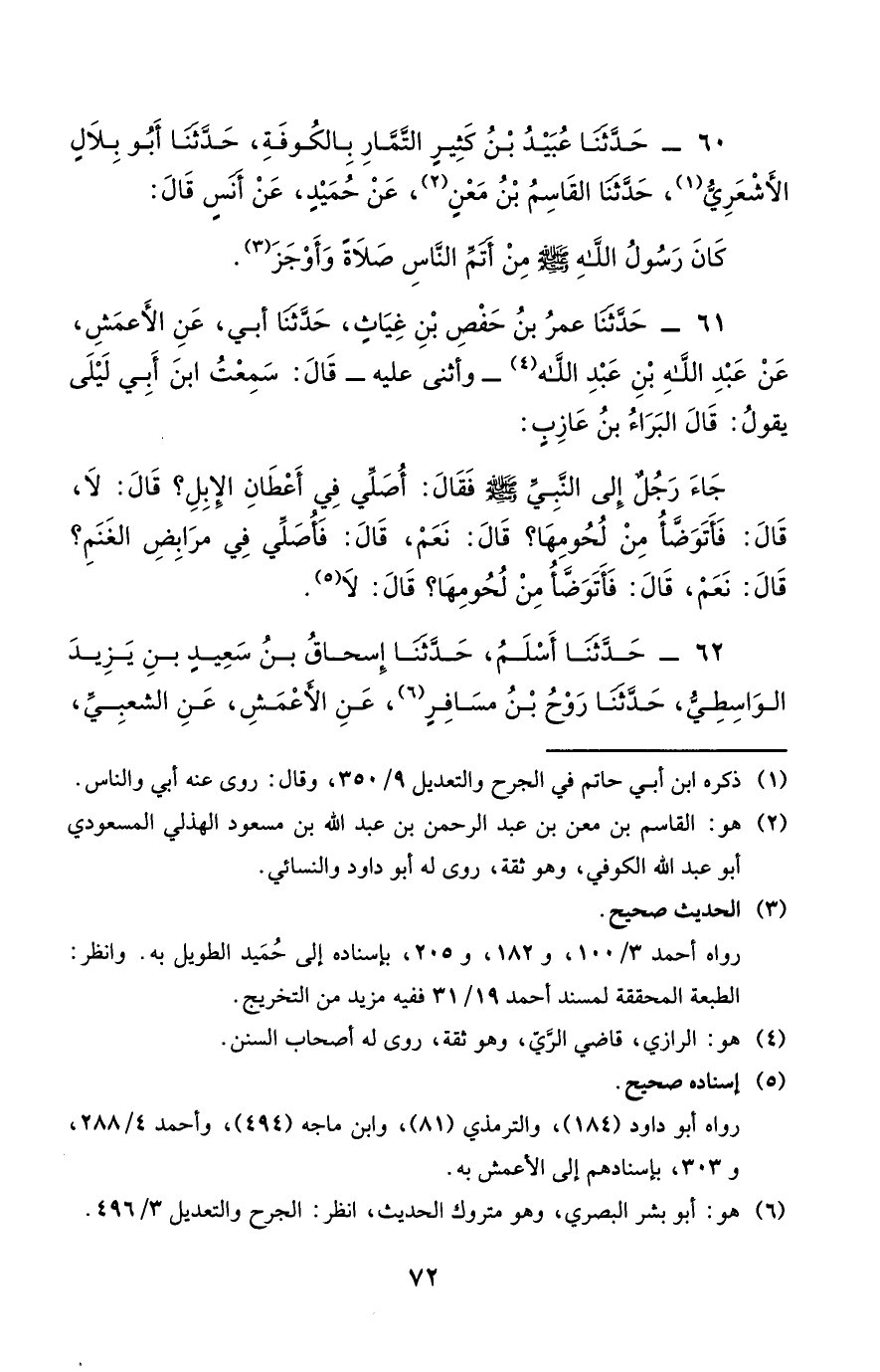 ٦٣ - حَدَّثَنَا إِبْرَاهِيمُ الْحَرْبِيُّ حَدَّثَنَا أَبُو نُعَيْمٍ حَدَّثَنَا يُونُسُ بْنُ أَبِي إِسْحَاقَ قَالَ حَدَّثَ [نَاجِيَةُ أَبَا] إِسْحَاقَ وَأَنَا مَعَهُ قَالَ تَمَارَى عَمَّارٌ وَابْنُ مَسْعُودٍ فِي التَّيَمُّمِ [فَقَالَ عَمَّارٌ أَمَا تَذْكُرُ] أَنَّا كَنَّا نَتَنَاوَبُ رَعِيَّةَ الإِبِلِ فَأَجْنَبْتُ فَتَمَعَّكْتُ كَمَا [يَتَمَعَّكُ الْبَعِيرُ] أَوِ الدَّابَّةُ فَأَتَيْتُ رَسُولَ اللَّهِ صَلَّى اللَّهُ عَلَيْهِ وَسَلَّمَ فَذَكَرْتَ ذَلِكَ لَهُ فَضَحِكَ [وَقَالَ كَانَ] يَكْفِيكَ مِنْ ذلك التيمم.