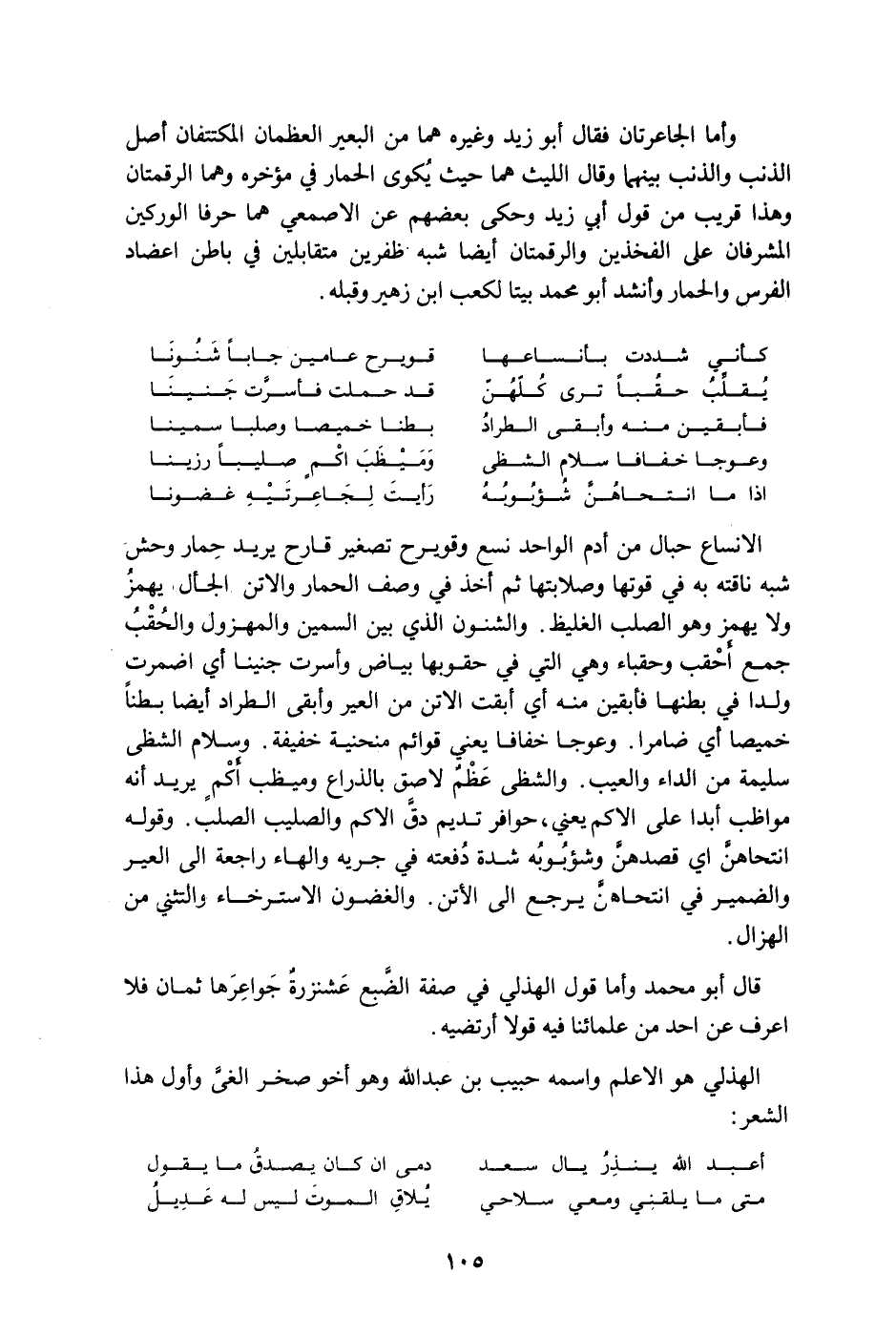قال أبو محمد وأما قول الهذلي في صفة الضّبع عشنزرةٌ جواعرها ثمان فلا أعرف عن أجذ من علمائنا فيه قولا أرتضيه.