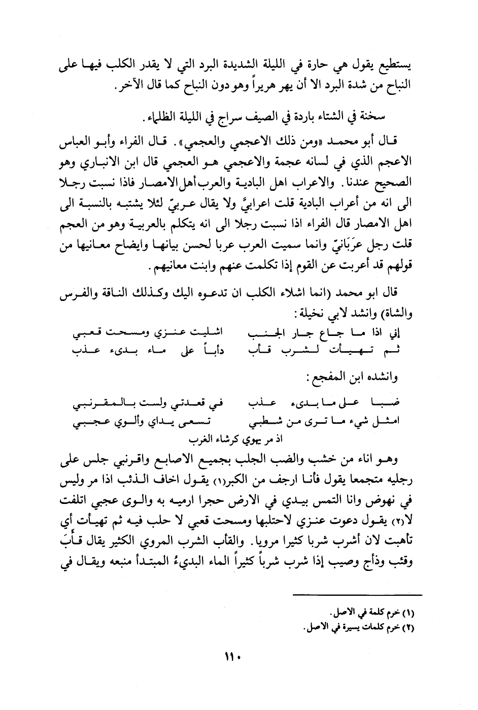 قال أبو محمد " ومن ذلك الأعجمي والعجمي ". قال الفراء وأبو العباس الأعجم الذي في لسانه عجمة والأعجمي هو العجمي قال ابن الأنباري وهو الصحيح عندنا. والأعراب أهل البادية والعرب أهل الأمصار فإذا نسبت رجلا إلى أنه من أعراب البادية قلت أعرابيّ ولا يقال عربيّ لئلا يشتبه بالنسبة إلى أهل الأمصار قال الفراء إذا نسبت رجلا إلى أنه يتكلم بالعربية وهو من العجم قلت رجل عربانيّ وإنما سميت العرب عربا لحسن بيانها وإيضاح معانيها من قولهم قد أعربت عن القوم إذا تكلمت عنهم وابنت معانيهم.
