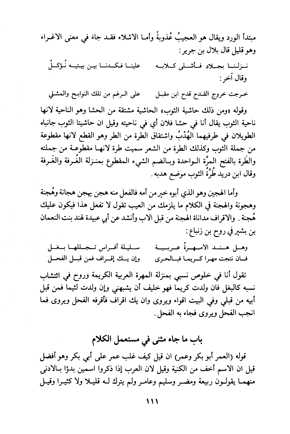 مبتدأ الورد ويقال هو العجيب عذوبةً وأما الأشلاء فقد جاء في معنى الإغراء وهو قليل قال بلال بن جرير: نزلنا بجلاد فأشلى كلابه علينا فكدنا بين بيتيه نؤكل وقال آخر: