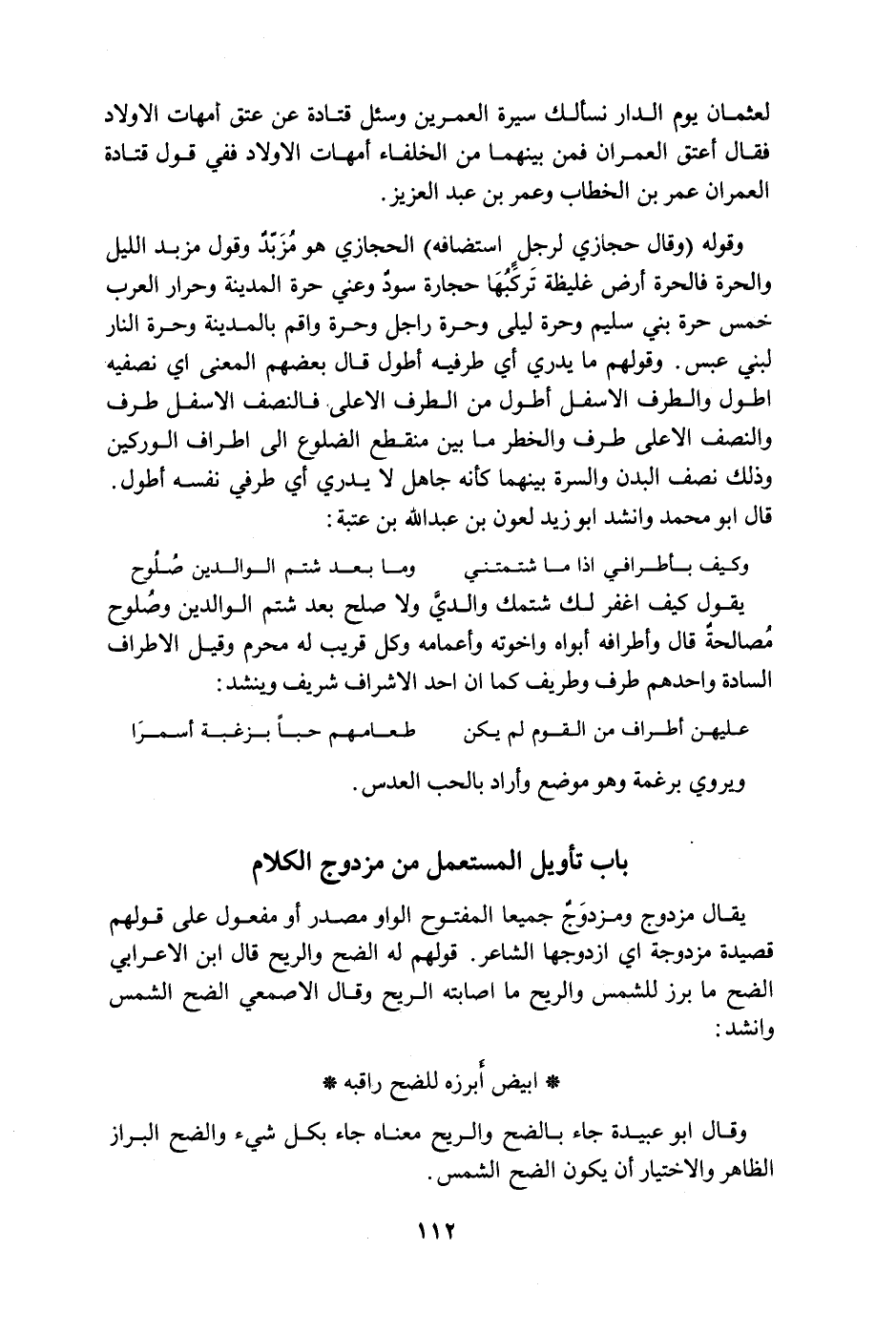 باب تأويل المستعمل من مزدوج الكلام