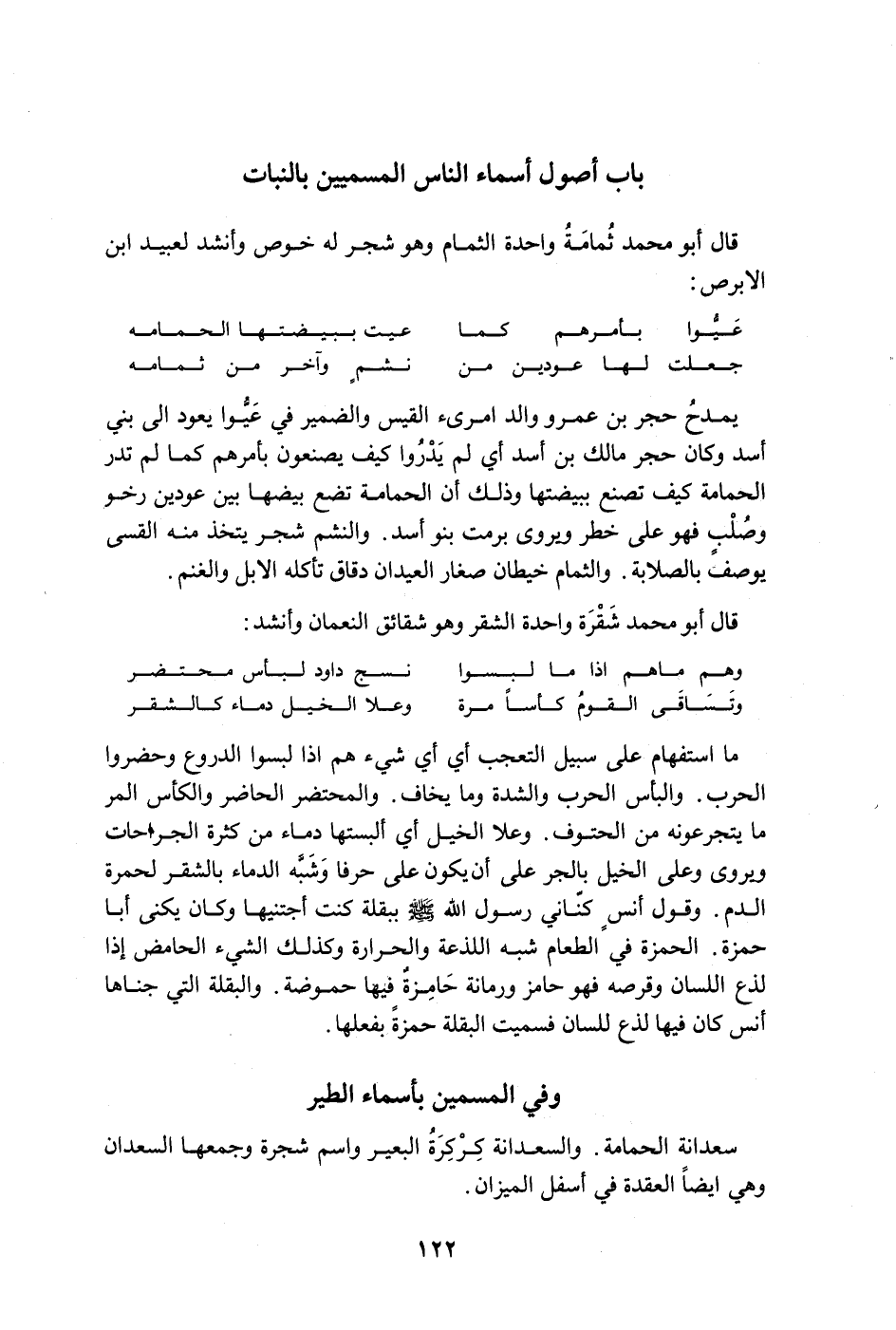 قال أبو محمد ثمامة واحدة الثمام وهو شجر له خوص وأنشد لعبيد ابن الأبرص: