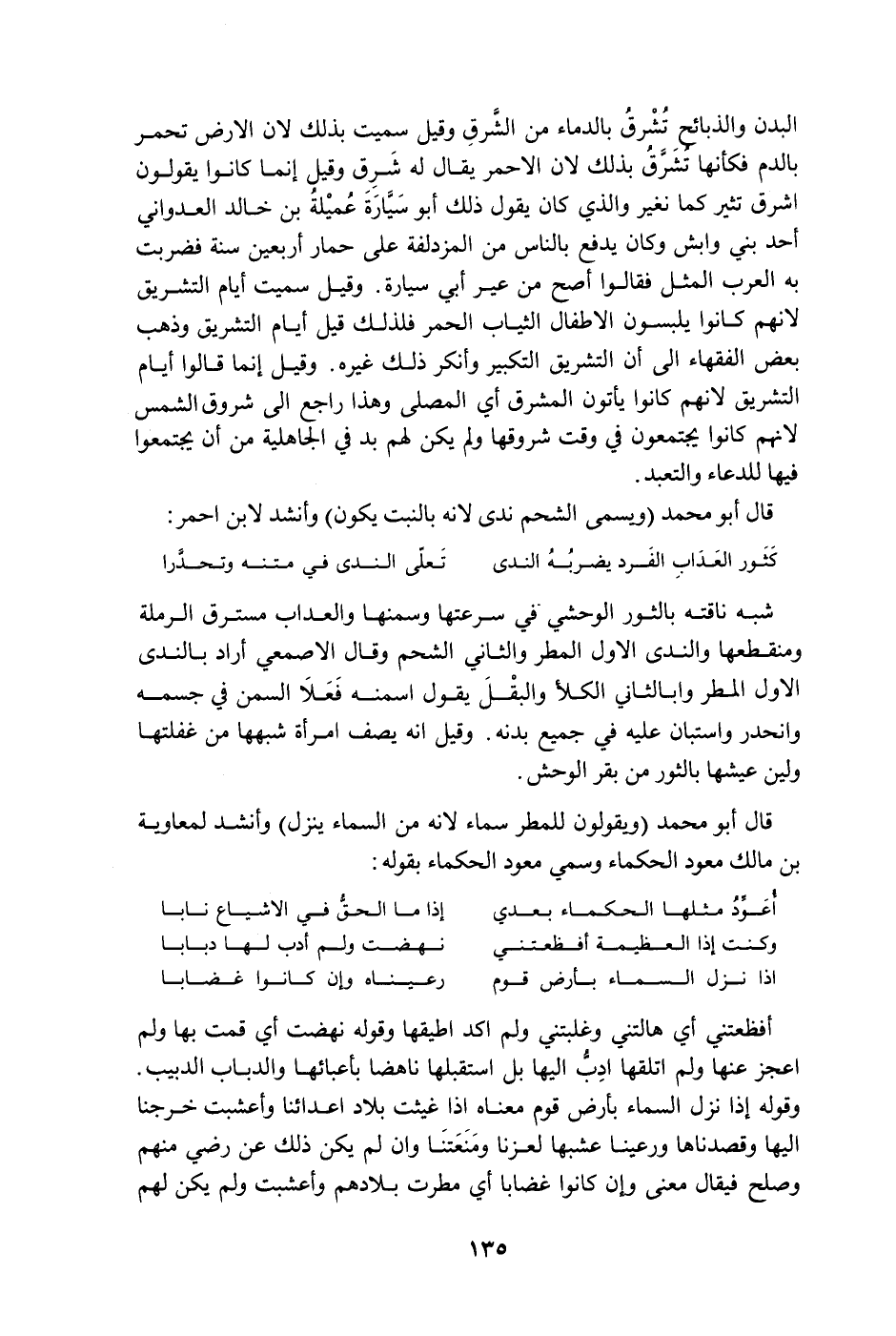 قال أبو محمد " ويسمى الشحم ندى لأنه بالنبت يكون " وأنشد لابن أحمر: