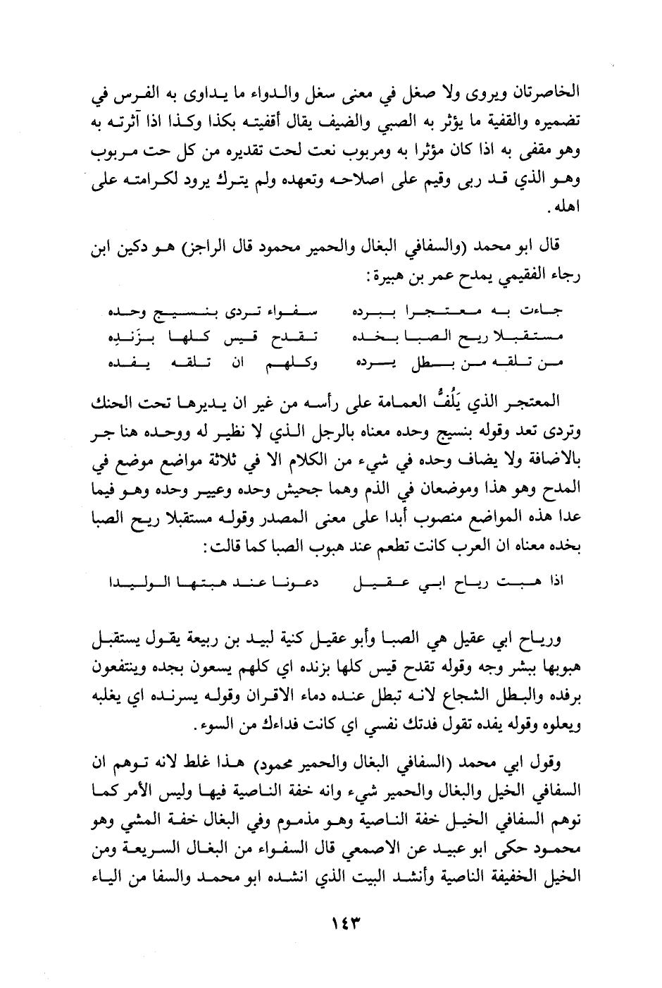قال أبو محمد " والسفافي البغال والحمير محمود قال الراجز " هو دكين ابن رجاء الفقيمي يمدح عمر بن هبيرة: