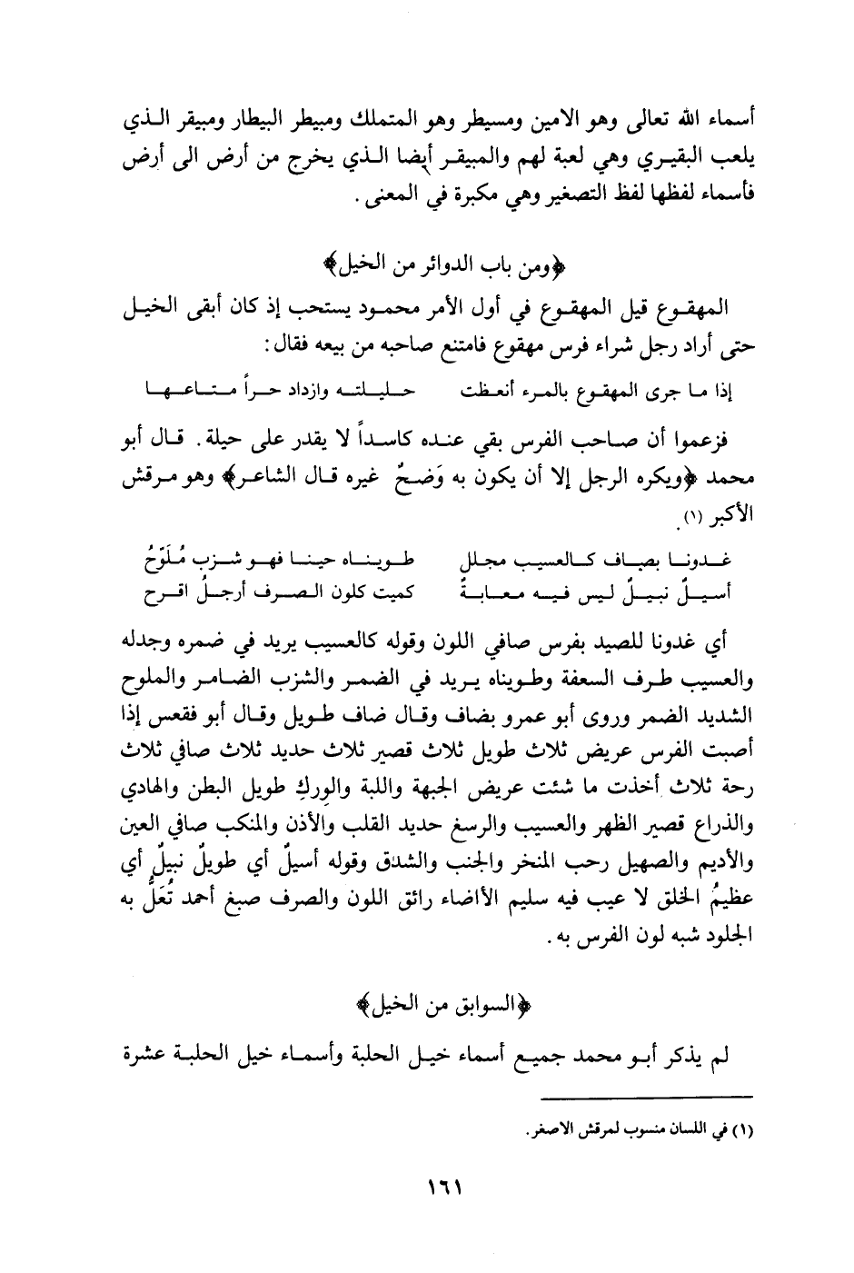 " السوابق من الخيل " لم يذكر أبو محمد جميع أسماء خيل الحلبة وأسماء خيل الحلبة عشرة