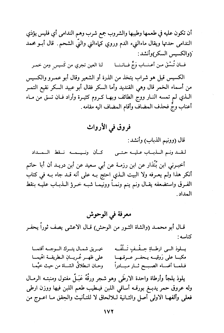 فروق في الأرواث قال " وونيم الذباب " وأنشد: